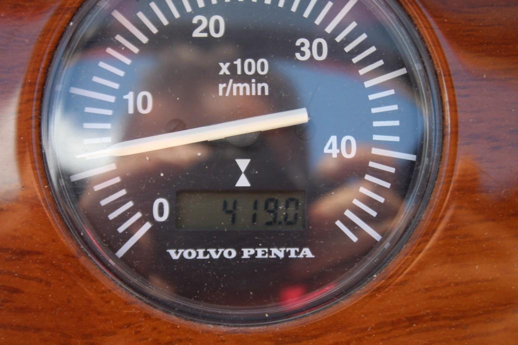 A rudder angle indicator, red lighted oversized compass, speedometer and integrated echo sounder completes the boat with all electronics needed.