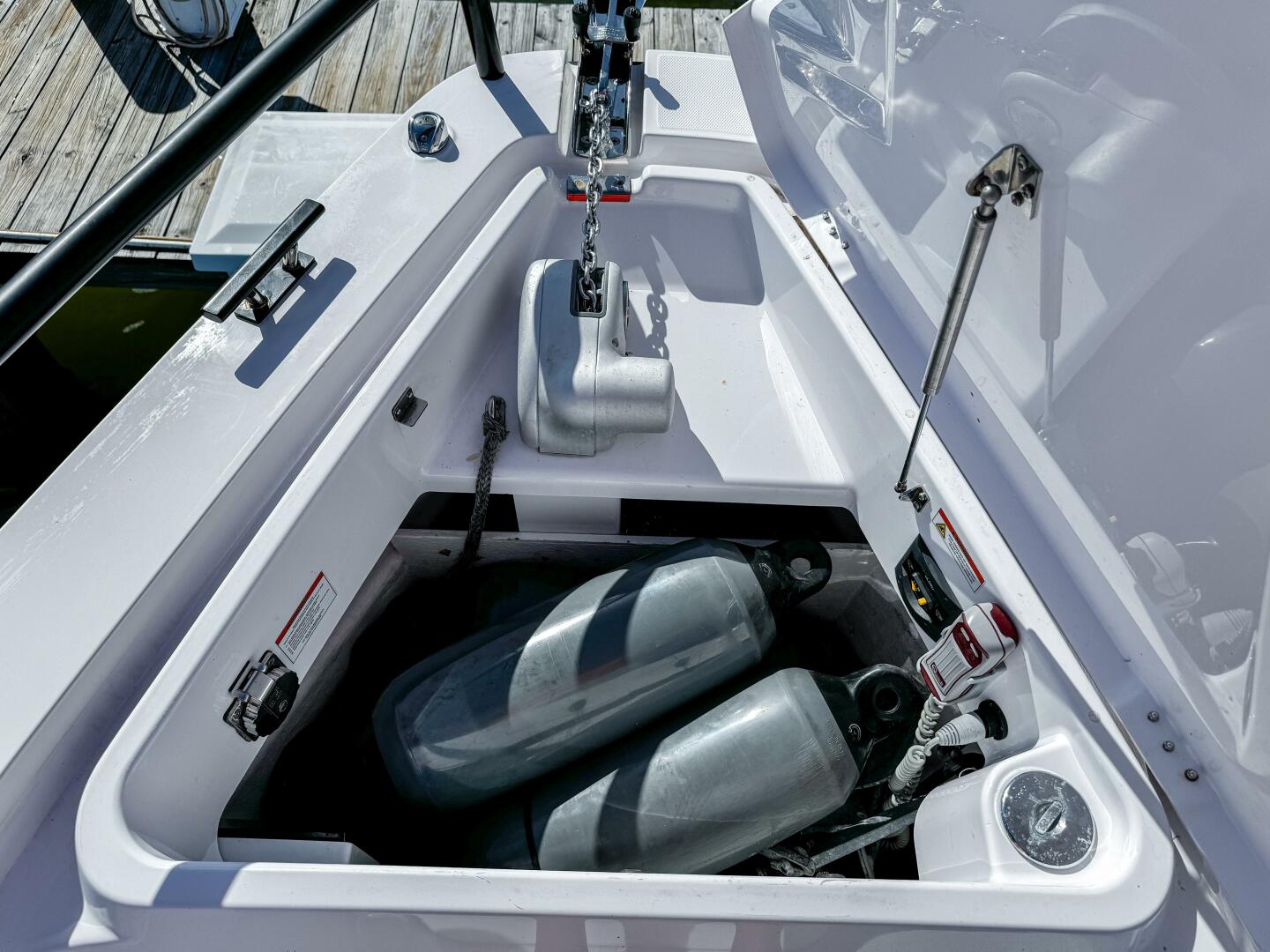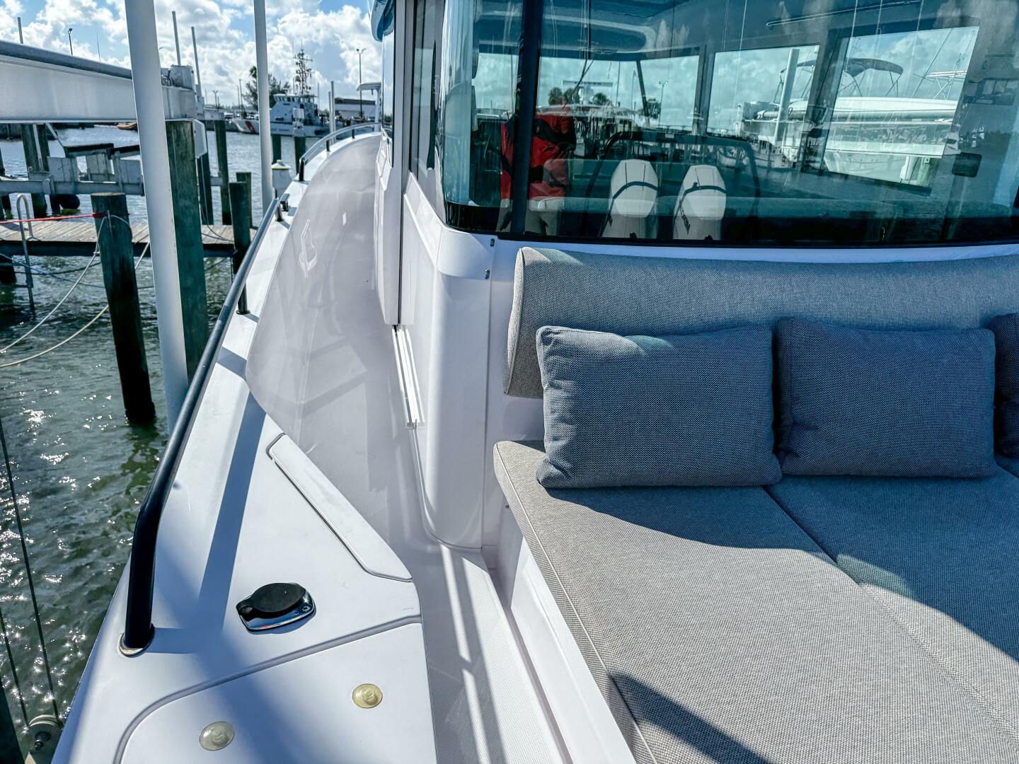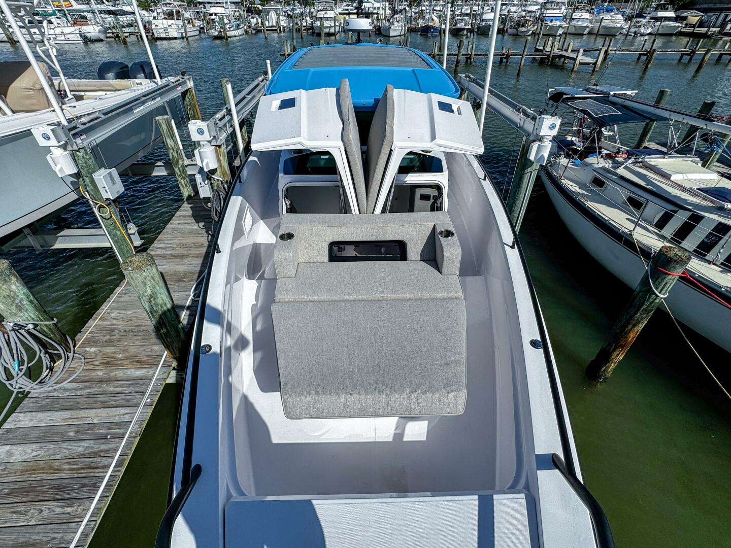 Featuring a brilliant Miami Blue hull with White Mercury 350 V10 Verrados, equipped with 1300 AH Lithium ion battery. Enjoy convenience and comfort with features like the bow thruster, autopilot, enclosed head with freshwater shower. This model also comes with a live well and ski arch for all kinds of fun on the water.