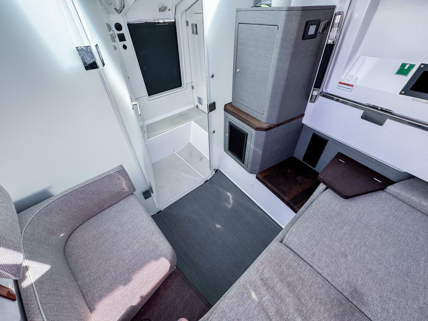 This model combines the functionality, ease of movement, social outdoor and indoor spaces and versatility of outboard walkaround centre-consoles with a spacious, fully enclosed weather proofed cabin, that with distinctive looks challenges traditional perceptions of cabin boats.