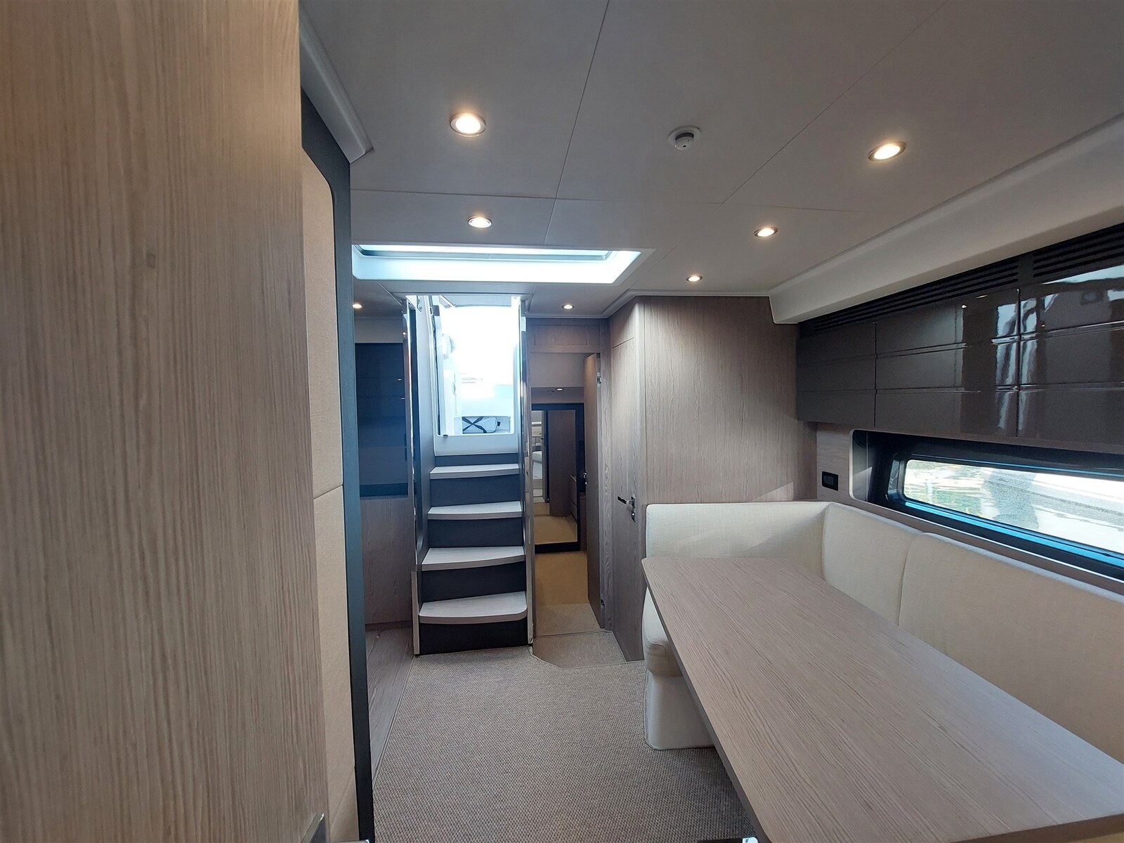 2 Motor Alarm, Bilge Alarm, Alternator, Waterdruk systeem, Walstroomkabel, Railing, Buitendouche, Verstelbaar zoeklicht, Anker bevestiging, 2 Elektrische trimflappen, Hardtop (elettrico), Brandblussysteem, 2 Trimflappen indicatoren, Wasbak in de kuip, Sfeerverlichting, 6 Stootwillen, Loopplank (Idraulica a scomparsa Besenzoni), Platform (Idraulica abbattibile), 4 Automatische bilgepomp, Ingangsdeur, Walaansluiting 230V, Gelijkrichter, Elektrische ankerlier, Zwemtrap, Kuiptafel, Opklapbare salontafel, Hoorn, Boeglier.