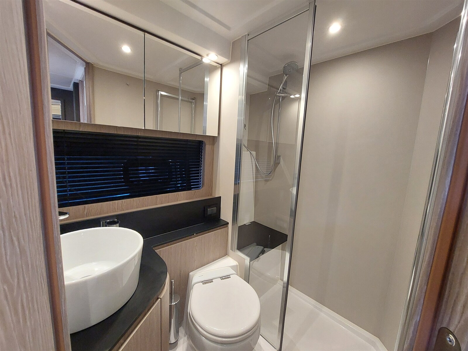 Warmwasser, Warmwasserbereiter (bivalente), Klimaanlage reverse cycle, Faekalientank, Innenholzboden, 12V Steckdose, 220V Steckdose, Schwarzwassertank, 2 elektrische Toilette.
