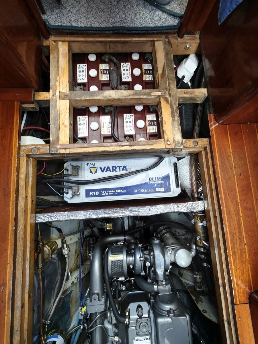 2 Ancla (5m Kette, 8mm), Bomba de agua dulce, 4 Baterías (400 Ah), Pasillos laterales en teca, Cargador de batería (50A LEB), 2 Bomba de achique automática, Bañera en teca, Toma de 220V para el puerto, Molinete eléctrico, Strand aparejo, mesa de bañera, Bocina, 9 Winch (2 x 52 ST, 2 x 46 ST Andersen, 4 Schotwinschen), Windex.