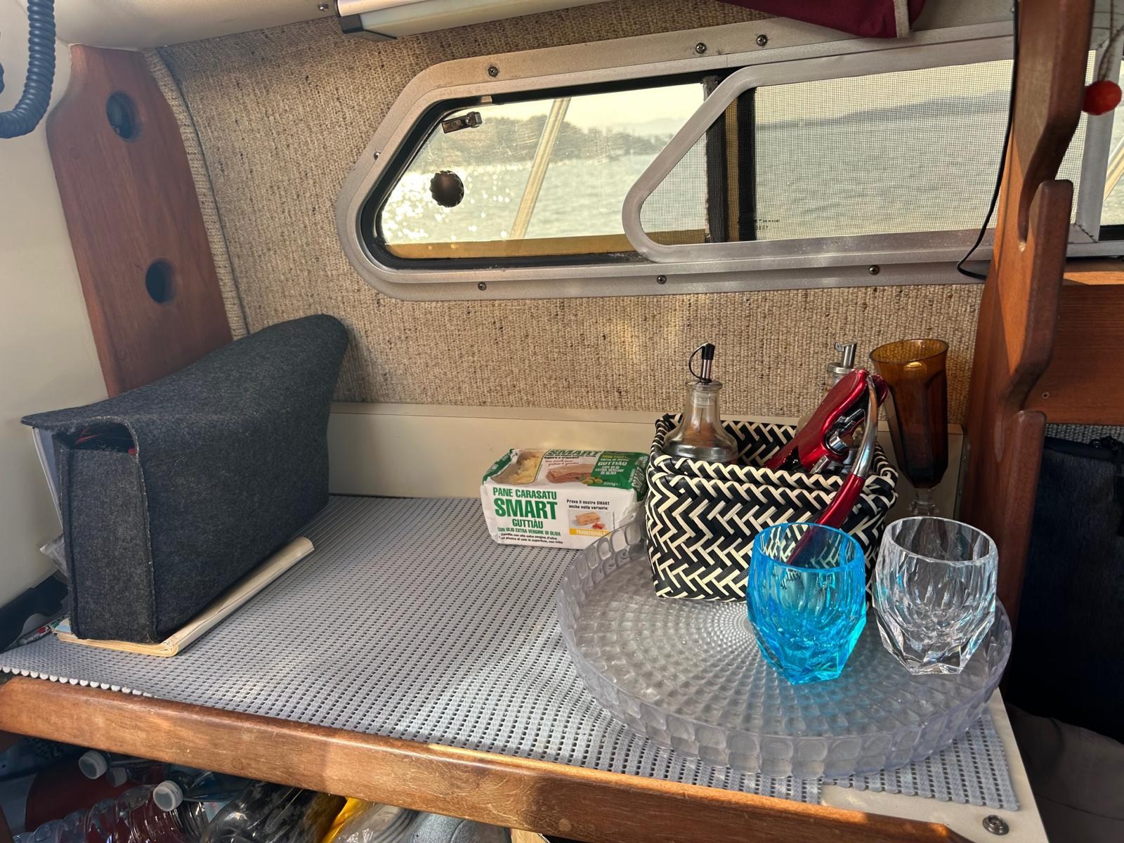 2 Engine Alarm, Bilge Alarm, Water pressure pump, 3 Batteries, Special Colour (Calendre motori rosso), Deck Shower, Crane, Washbasin in the cockpit, Courtesy Lights, Platform, Entry door, Voltage Rectifier, Electric Windlass (new 2025), swimming ladder, cockpit table, Living Room Foldable Table, Horn.