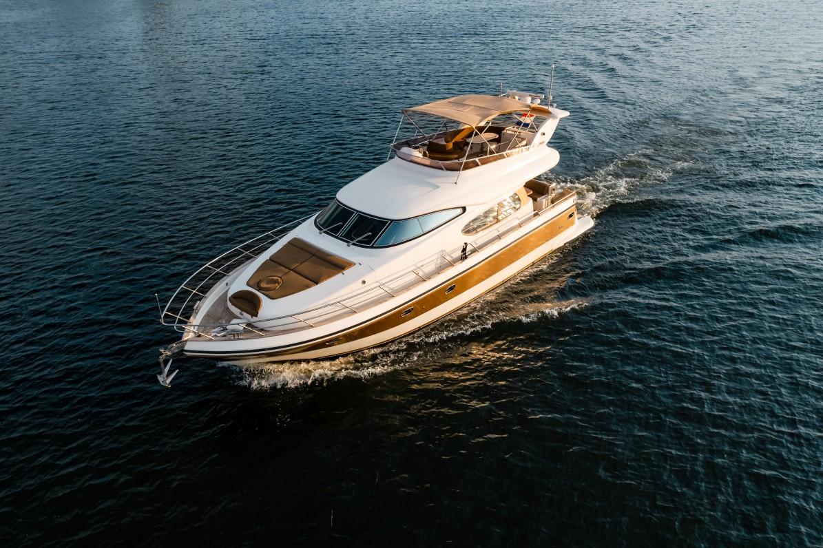 With this model, Elegance Yachts has made its official debut in the luxury superyacht sector. It was designed for those who wish to cruise in top-of-the-range style, without forsaking that feeling of intimacy typical of Elegance's yachts. The 54 was designed to maintain the House characteristics, and it has superb, dynamic and sophisticated lines. The exceptional design work performed by the Elegance Engineering is particularly obvious on the flybridge, which represents a combination of styling and spacious luxury. It is an invitation to enjoy sun and sea in conditions of total relaxation. Everything is incredibly detailed, exclusive and comfortable, such as curved seats, the cocktail bar, the settees and the sundeck.
