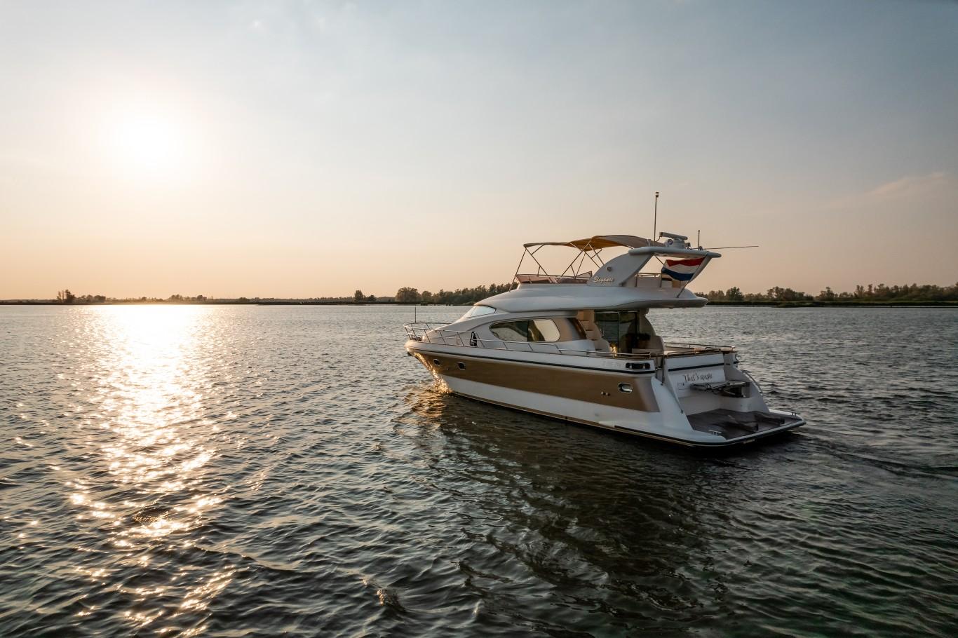 Regarding performance, this Elegance 54 has two latest edition MAN R6-800 engines, chosen in order not to disappoint clients' expectations for this type of super yacht. It is possible to reach a cruising speed of 27 knots, while maximum speed is 29 knots.