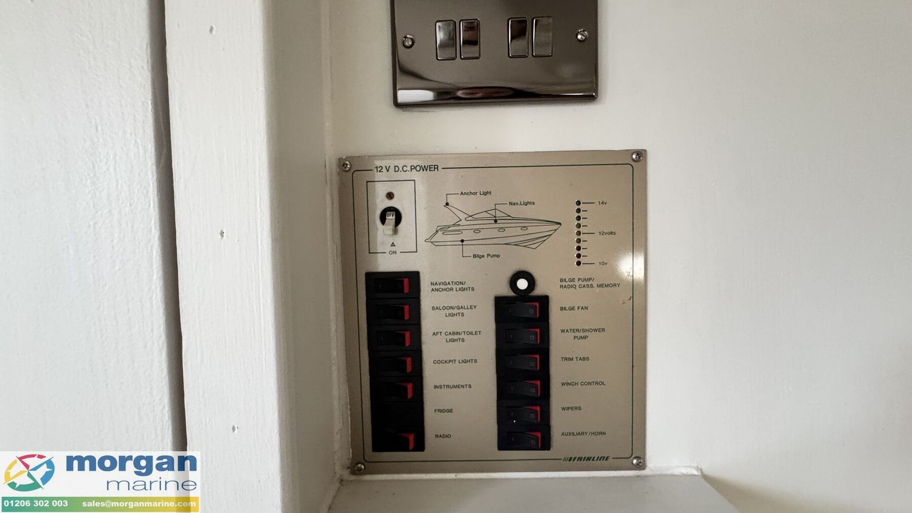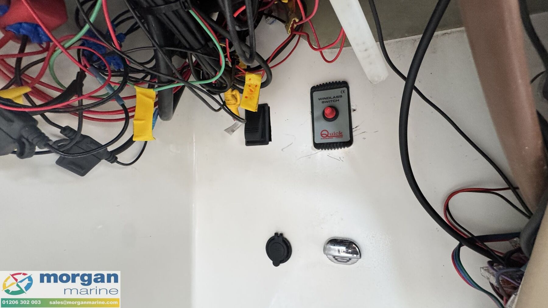 Electronics: Raymarine Axiom chart plotter. Raymarine VHF radio. New Wema engine gauges (battery voltage x2, temperature x2, oil PSI x2, RPM x2, 1x rudder indicator, 1x fuel gauge,""). Horn. Electric trim tabs. Electric windscreen wipers. Navigation lights. Anchor light. Interior lights. 240v Shore power. USB sockets. Electric and automatic bilge pumps.