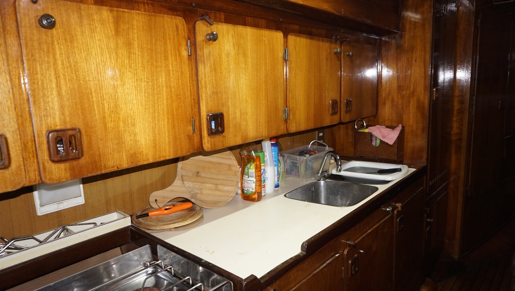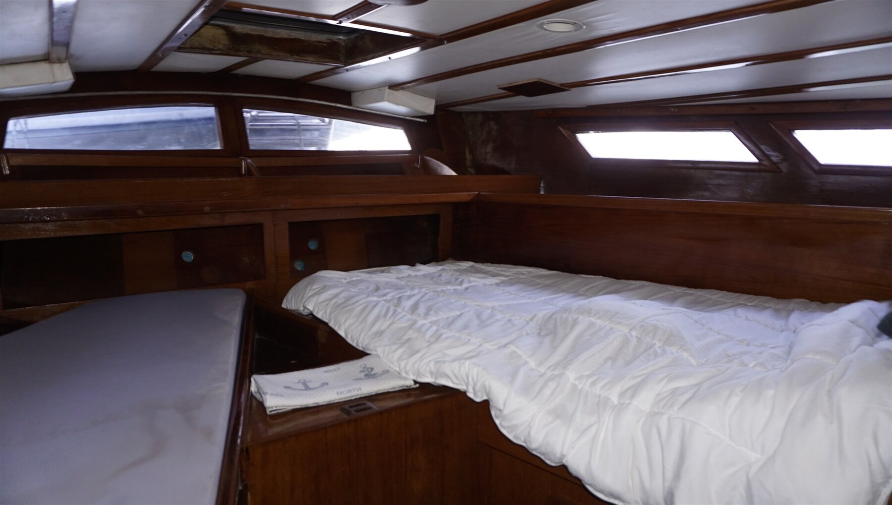 Alternator (new), Anchor (70 kg + 120 m 12mm chain), Water pressure pump, Batteries (2024/25), Deck Shower, Bow Thruster (rev. 2024), Wind Generator, Outboard Crane, Outboard engine for tender (TOHATSU 9.9), Solar panels, Fenders, Gangway, Platform, Manual Bilge Pump, Shorepower connector, Electric Windlass, swimming ladder (+ bow ladder), cockpit table, Tender (RIB), Winch, Winch Electric (2 x), Windex.