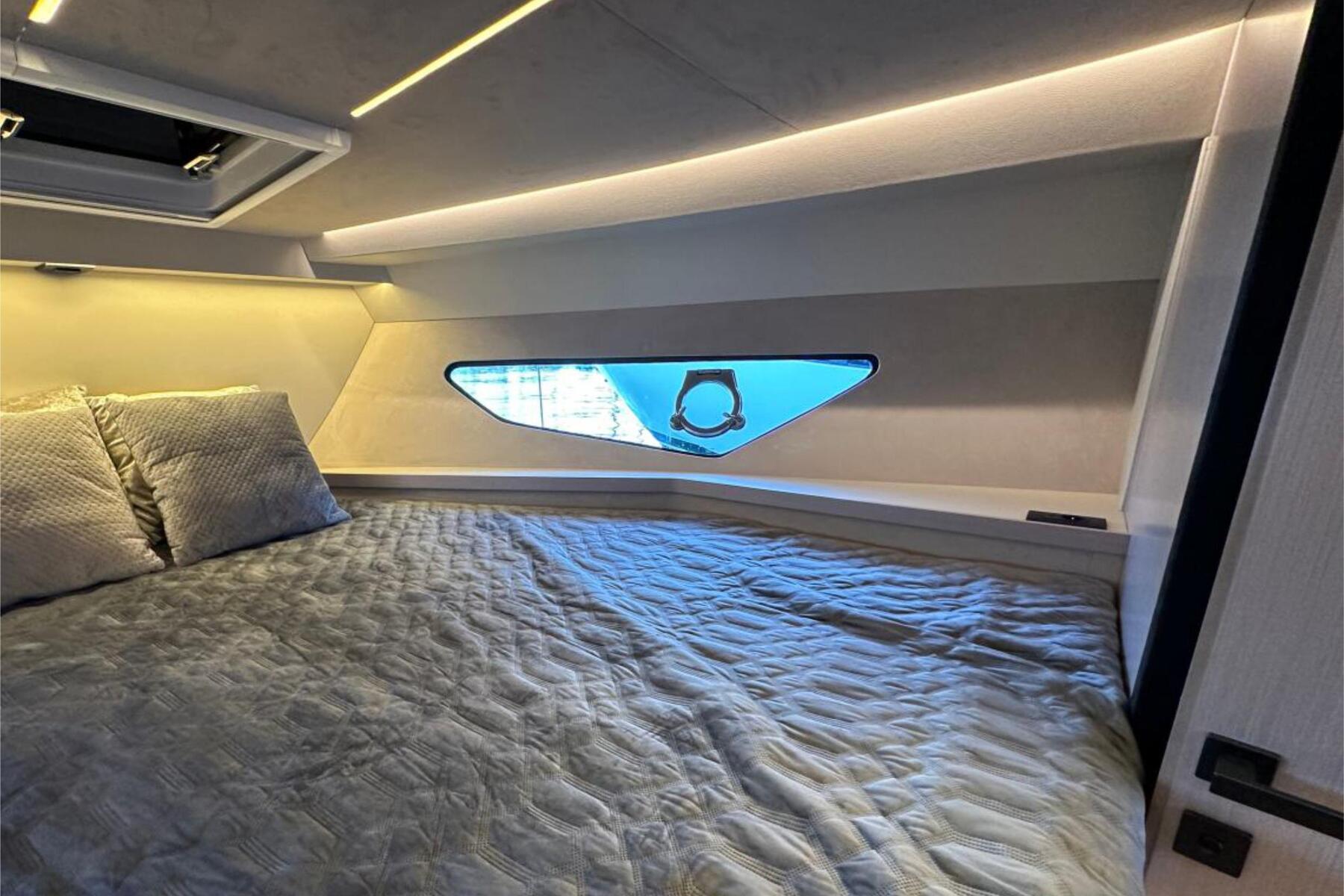 The Focus 3X is engineered to offer the best of both worlds: the openness of an open boat with the option for privacy. Key to this are the wide electric side windows, allowing for an instant transformation from an enclosed space to an open experience at a button's press.