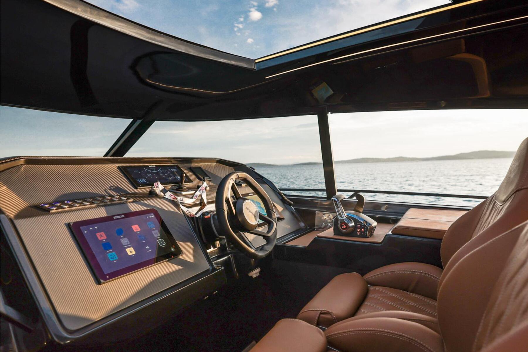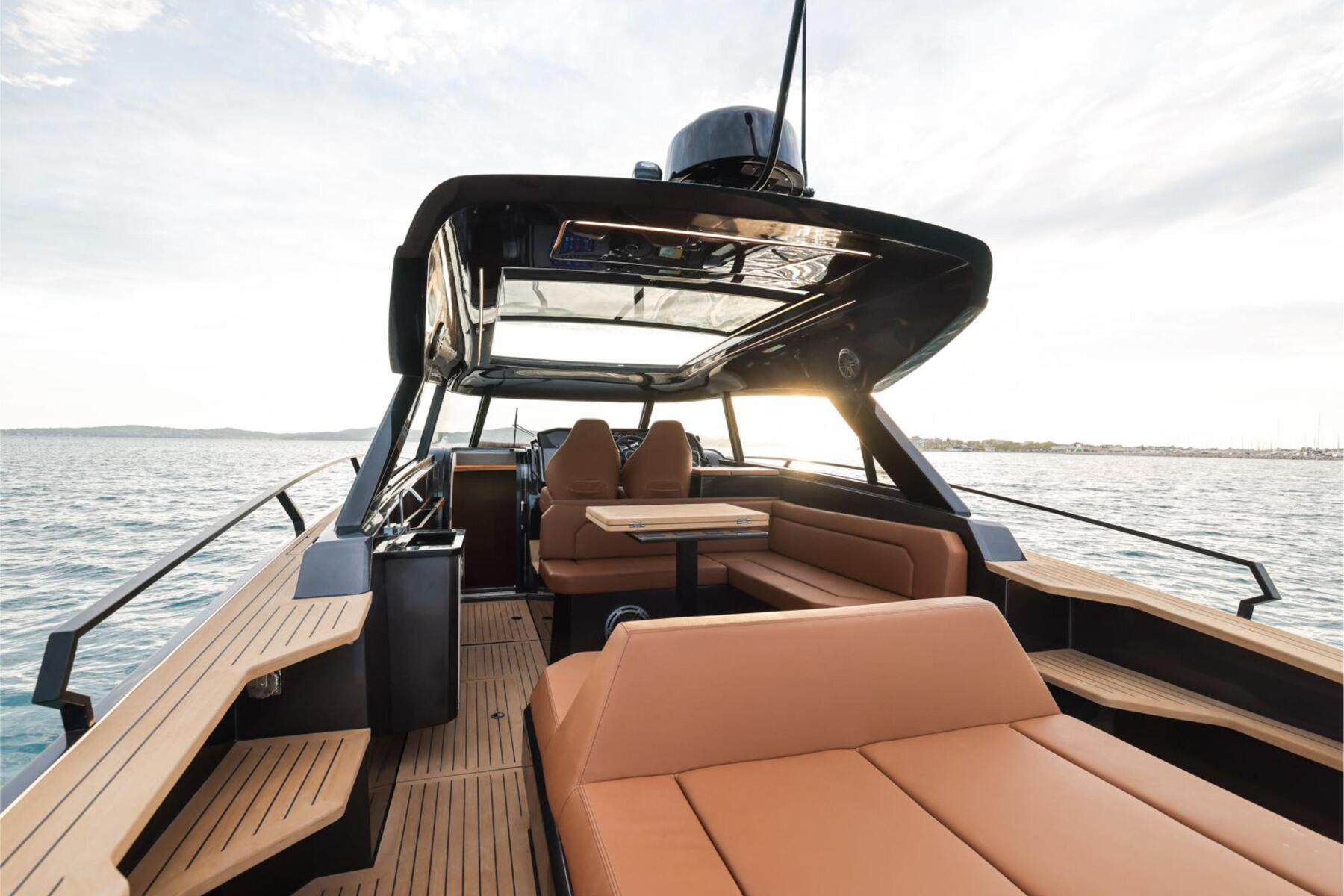 The Focus 3X is engineered to offer the best of both worlds: the openness of an open boat with the option for privacy. Key to this are the wide electric side windows, allowing for an instant transformation from an enclosed space to an open experience at a button's press.