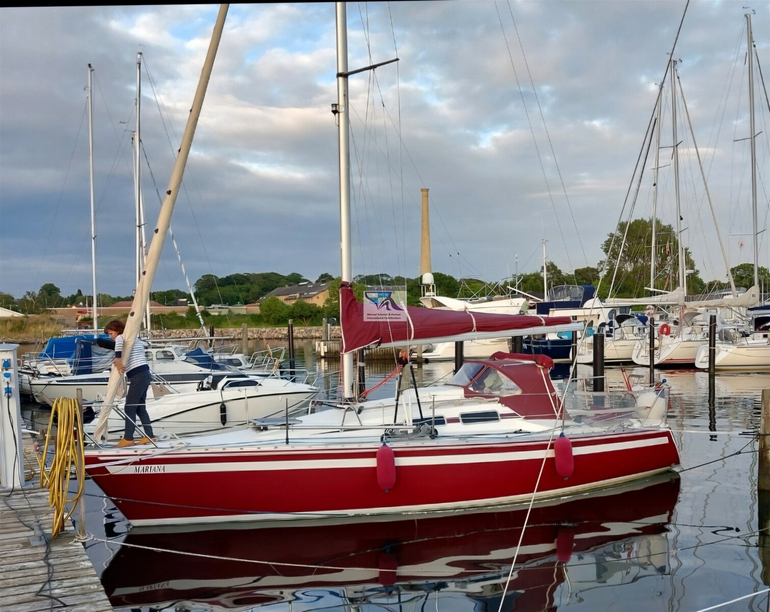 She is comfortable, fully equipped with oiled teak, has the best sailing characteristics and was the first series yacht with a self-tacking jib.