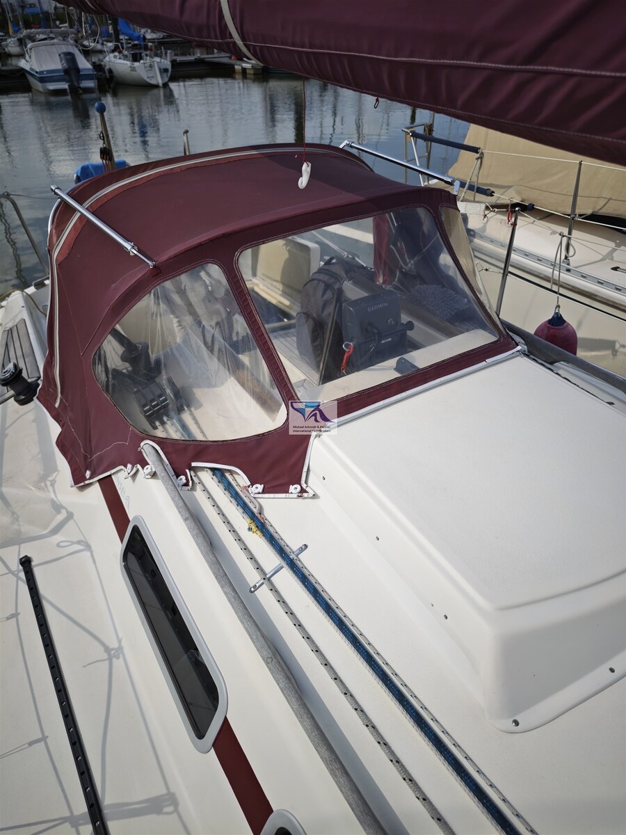 Sprayhood (und Kuchenbude), Ganzpersenning (Hafenpersenning über Plicht und Sprayhood), Polster, Instrumenten Abdeckung.