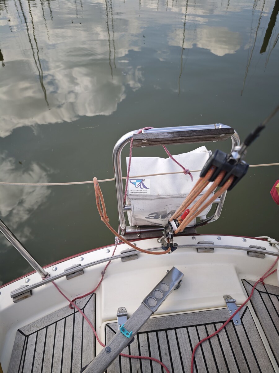 2 Anker (Edelstahl), Druckwasserpumpe, Teak im Cockpit, Landanschluß, Badeleiter, Cockpittisch, Signalhorn (manuell), 4 Winschen, Windex.