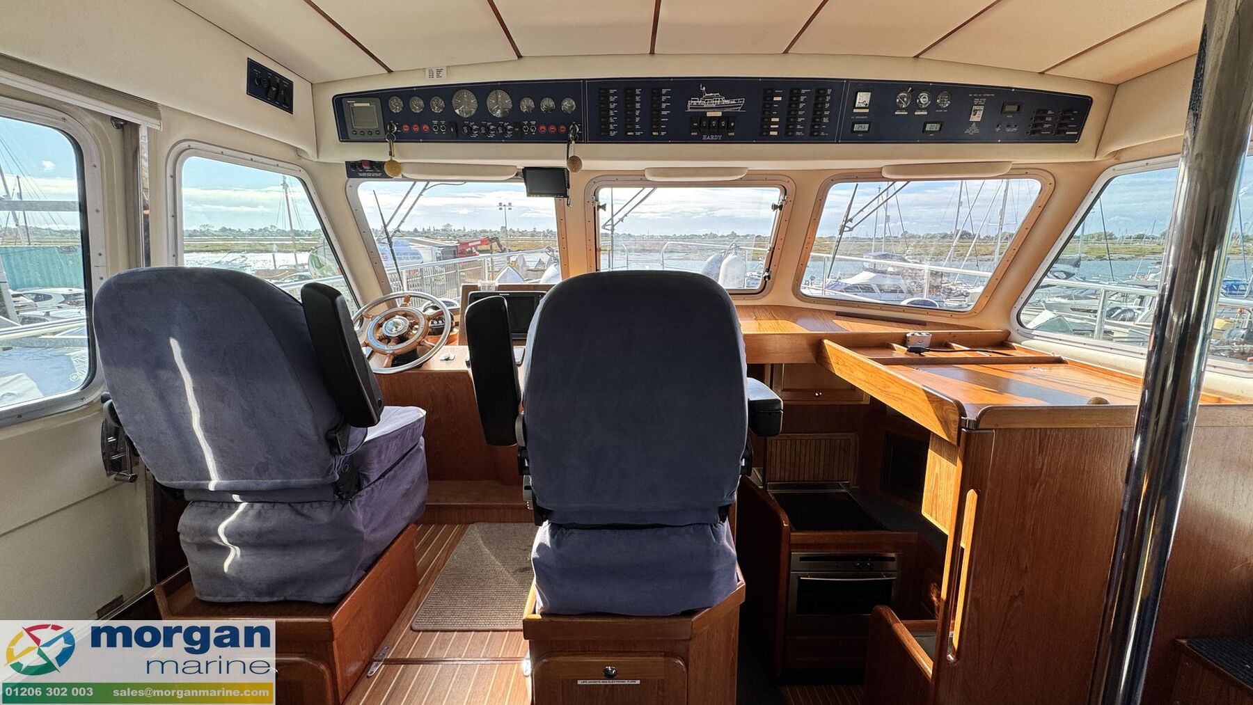Just arrived at Morgan Marine, the 2003 Hardy Commodore 42 Flybridge is an exceptional example of a versatile and capable offshore cruiser. Powered by twin Yanmar 420hp 6LY2M STE inboard diesel engines on shaft drives, with the added benefit of a bow thruster, she offers both power and precision on the water. Presented in fantastic condition with a huge amount of upgrades and service history, Himalia combines striking looks with outstanding seakeeping ability, making her a true all-rounder. Step on board and you’ll find accommodation for five across three cabins, a spacious saloon with panoramic 360-degree views, and a fully equipped galley designed for comfort at sea. She comes loaded with premium features, including Raymarine autopilot, four modern Raymarine chart plotters, Raymarine VHFs, a fully serviceable generator, diesel heating, an electric windlass with helm and flybridge controls, a rear digital camera, and much more. With a cruising speed of 15–20 knots and the ability to reach up to 25 knots, this boat delivers performance to match her style, cutting effortlessly through the waves. Backed by a solid service history and complete title paperwork, Himalia is a rare opportunity that won’t stay on the market for long. Early viewing is strongly recommended - Contact Morgan Marine today to arrange yours.