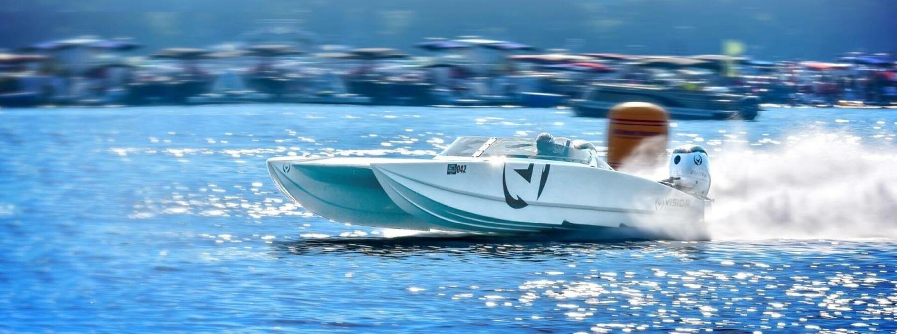 This boat was the world record holder for fastest electric boat from 2022-2023, set by 7 time world champion at Lake of the Ozarks Shootout!