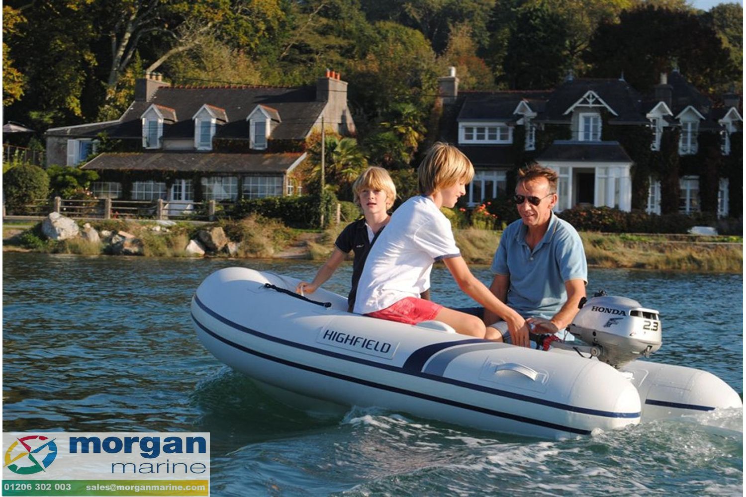 Highfield UL 240 aluminium hull RIB - max engine 6hp. Their light weight make these RIBs a real alternative for those who may have chosen a soft bottom tender in the past but would prefer a hard hull for its performance. Ultralite tenders are roomy and strong, yet light and easy to transport. These little boats can be launched and recovered by a single man and are easy to be transported on a roof rack. You will be impressed by their obvious quality level. The excellence of the finish only compares to the detail of the ergonomics. The simple layout is combined with an uncluttered design and numerous standard accessories complete the picture. Design category C. NB - library photos may not reflect specification of boat.