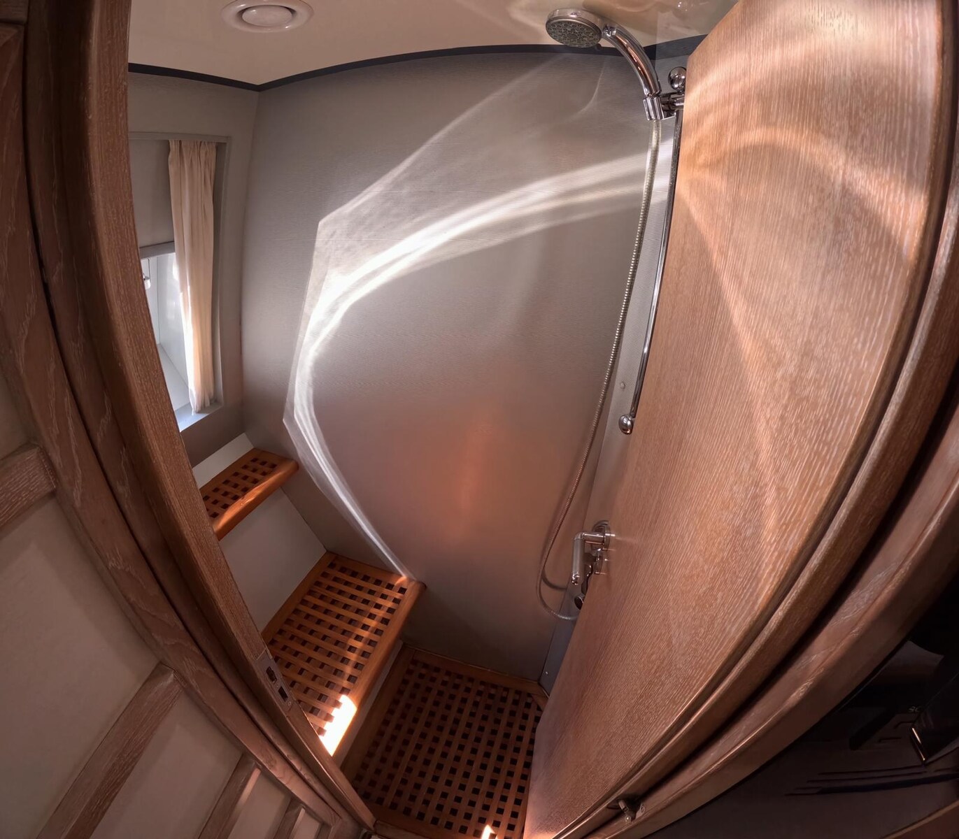Warm water, Warmwater boiler, Dimmer voor verlichting, Watermaker (Idromar 250 l/h), Fecaliëntank, Watertankmeter, Vuilwatertankmeter, 12V Stopcontacten, 230V Stopcontacten, Elektrisch toilet.
