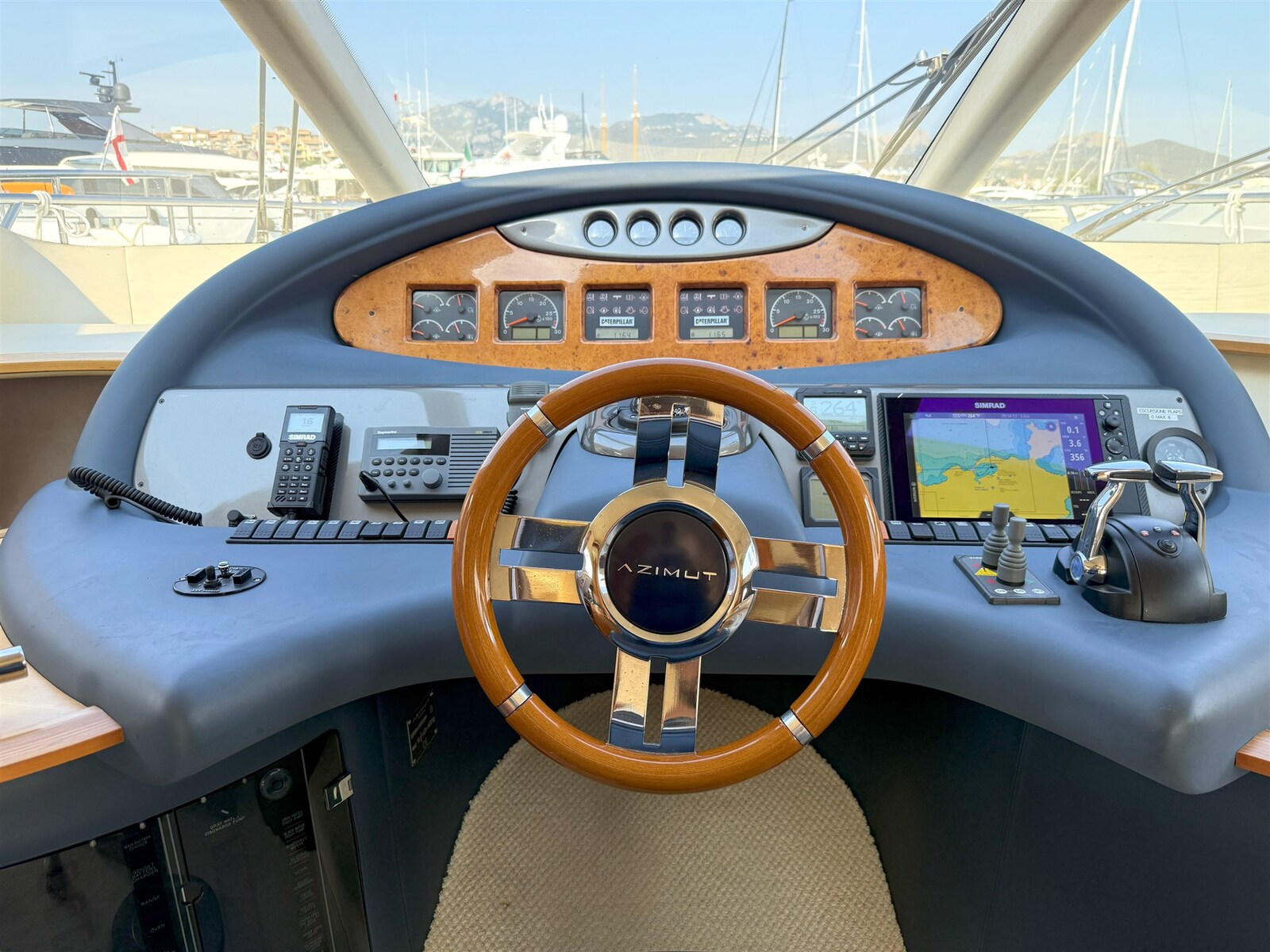 The Azimut 55 Fly is one of the most successful models in the Italian shipyard's historic range, appreciated for its perfect combination of elegance, comfort and performance. Classic lines and balanced proportions blend with surprisingly generous interior spaces for the category: three cabins, two bathrooms, a separate sailor's cabin and a large saloon with a convivial dining area. This unit is in excellent general condition, with numerous maintenance interventions carried out in recent years. The internal upholstery of the stairwell leading to the sleeping area was completely redone about 5 years ago, giving the interiors a renewed and bright look. The boat is equipped with a new stainless steel chain, a new winch, AGM service batteries installed in 2025 with a new charger, and recently replaced stern cushions. The flybridge glass has been replaced, while the on-board instrumentation was completely updated about 2 years ago with new Simrad display, VHF and compass. The picture is completed by the safety equipment ready for navigation. A boat with attention to every detail, constantly loved, maintained, and updated, ideal for those looking for a prestigious, reliable and ready-to-use flybridge.