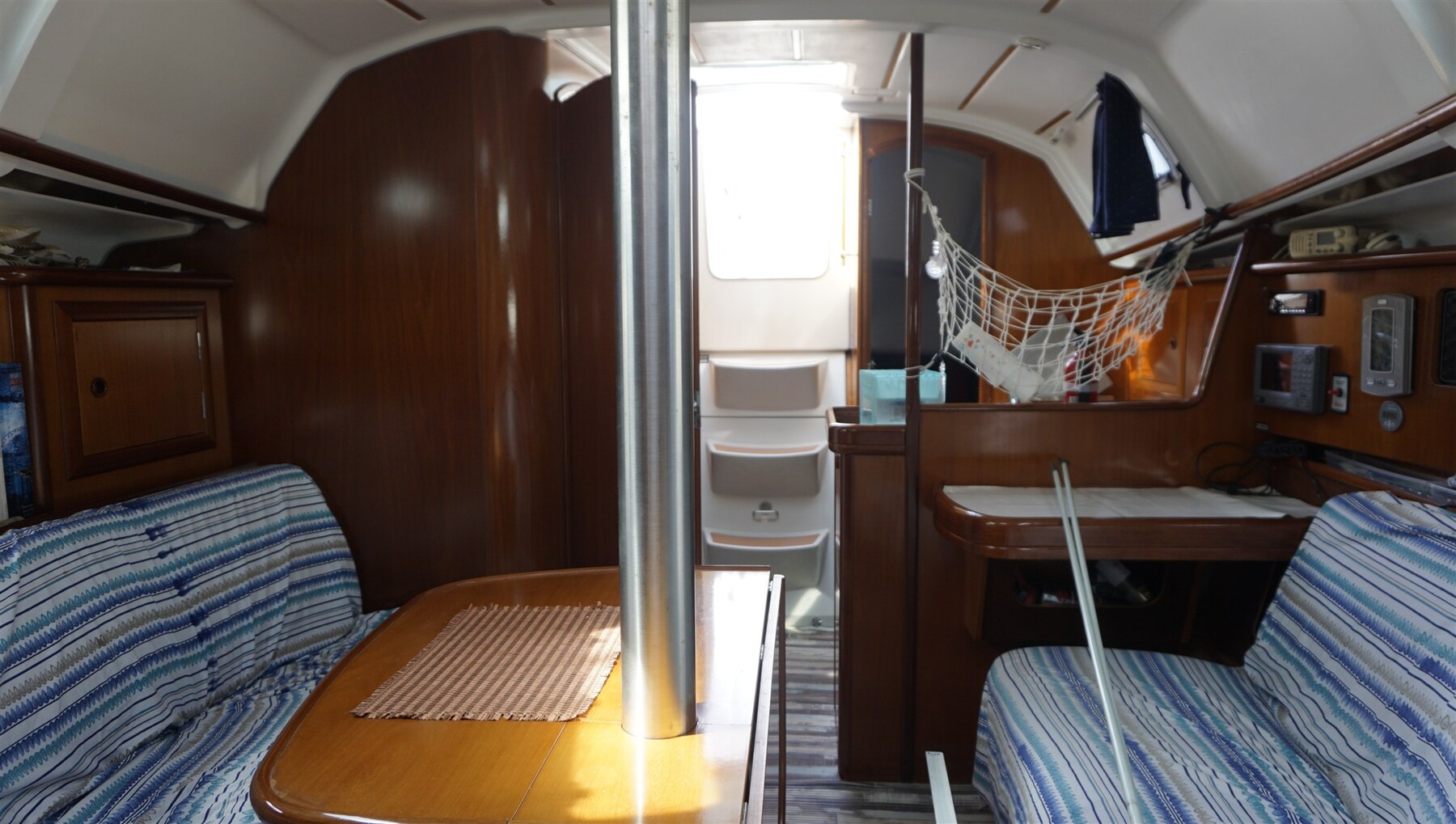 AIS, Угол поворота (RAYMARINE), Компас (PLASTIMO), спидометр (RAYMARINE ST60), Эхолот (RAYMARINE ST60), GPS (FURUNO), Вход (RAYMARINE ST60), Автопилот (RAYMARINE ST4000), плоттера (FURUNO), Радио VHF (ICOM IC-M401), Ветровая установка (RAYMARINE ST60).