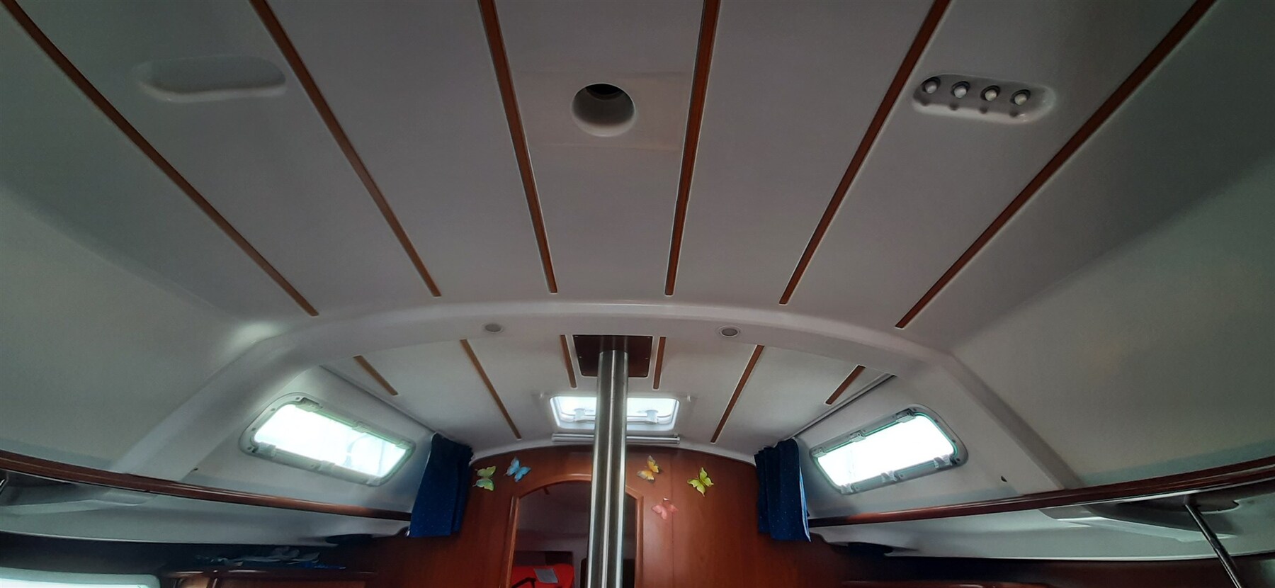 Motoralarm, Anker (ROCNA 10 kg), Druckwasserpumpe, Batterien (2024 160 Ah + 80 Ah), Landstromkabel, Cockpitdusche, Plattform, manuelle Bilgepumpe, Landanschluß, Rectifier, elektrische Ankerwinde (800W), Badeleiter, Windex.