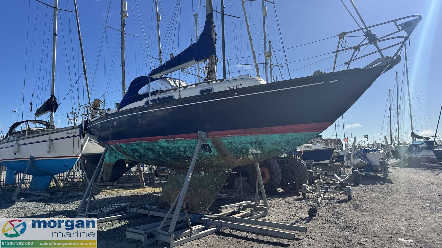 Classic Hustler 30 Hariette B balanced cruiser racer with pedigree design and enduring appeal. Designed by the renowned Holman and Pye and built with a GRP hull by Tylers before being expertly fitted out by Landamores in 1970, she represents a fine example of British yacht craftsmanship from this celebrated era. Her solid construction features a cast iron fin keel and a skeg-hung rudder, on deck, she benefits from a practical sprayhood, furling genoa, mainsail with cover, and Lewmar winches, making her well set up for both relaxed cruising and more spirited sailing. Below deck, Hariette B offers a warm and functional interior with impressive accommodation for her class. The saloon provides comfortable seating with a dinette to port that converts into an additional berth, complemented by 5ft 10in headroom. The galley is well equipped with a fridge, microwave oven, sink, hob, and ample storage. A manual sea toilet is fitted in the heads compartment, while the layout also includes a practical quarter berth aft and a cosy forecabin with a V-berth.