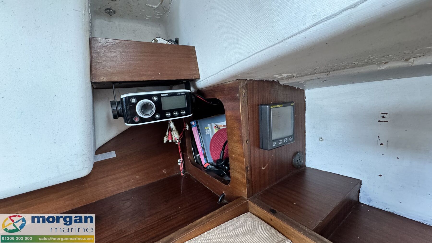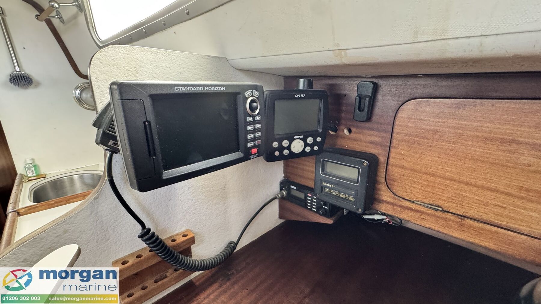 Electronics: Standard Horizon chart plotter. Garmin 152 GPS and fish finder. Clipper GPS repeater in cockpit. Fusion audio with speakers. NASA depth marine instrument. B and G Harrier log and speedometer. Swiftech VHF radio with masthead aerial. Raymarine St2000 plus tiller pilot. Navigation lights. Anchor light. Interior lights. Battery isolator switch wired to distribution board. Solar panel. Corsair compass. 12v Volt system with 2x 12v batteries (engine and domestic) charged by engine driven alternator. 240v Shore power with lead. Outlet socket. Battery charger.