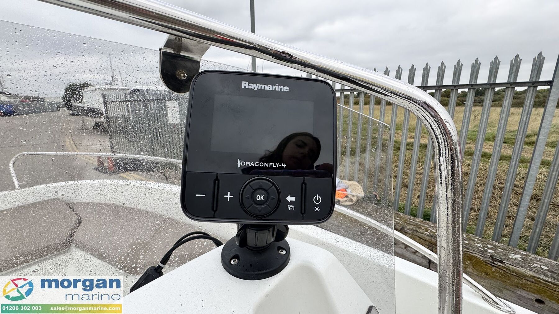 Electronics: Raymarine Dragonfly 4 plotter with sonar. Isolator switch. Honda gauges (RPM and trim). Navigation lights. 12V DC socket. Automatic and manual bilge pump.