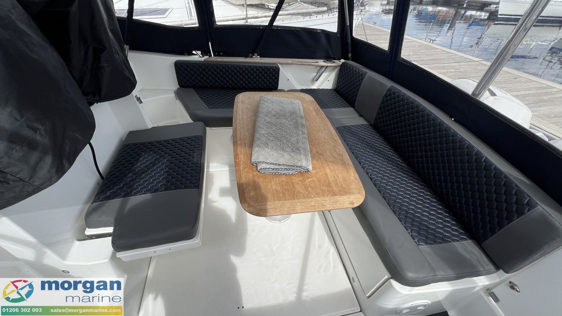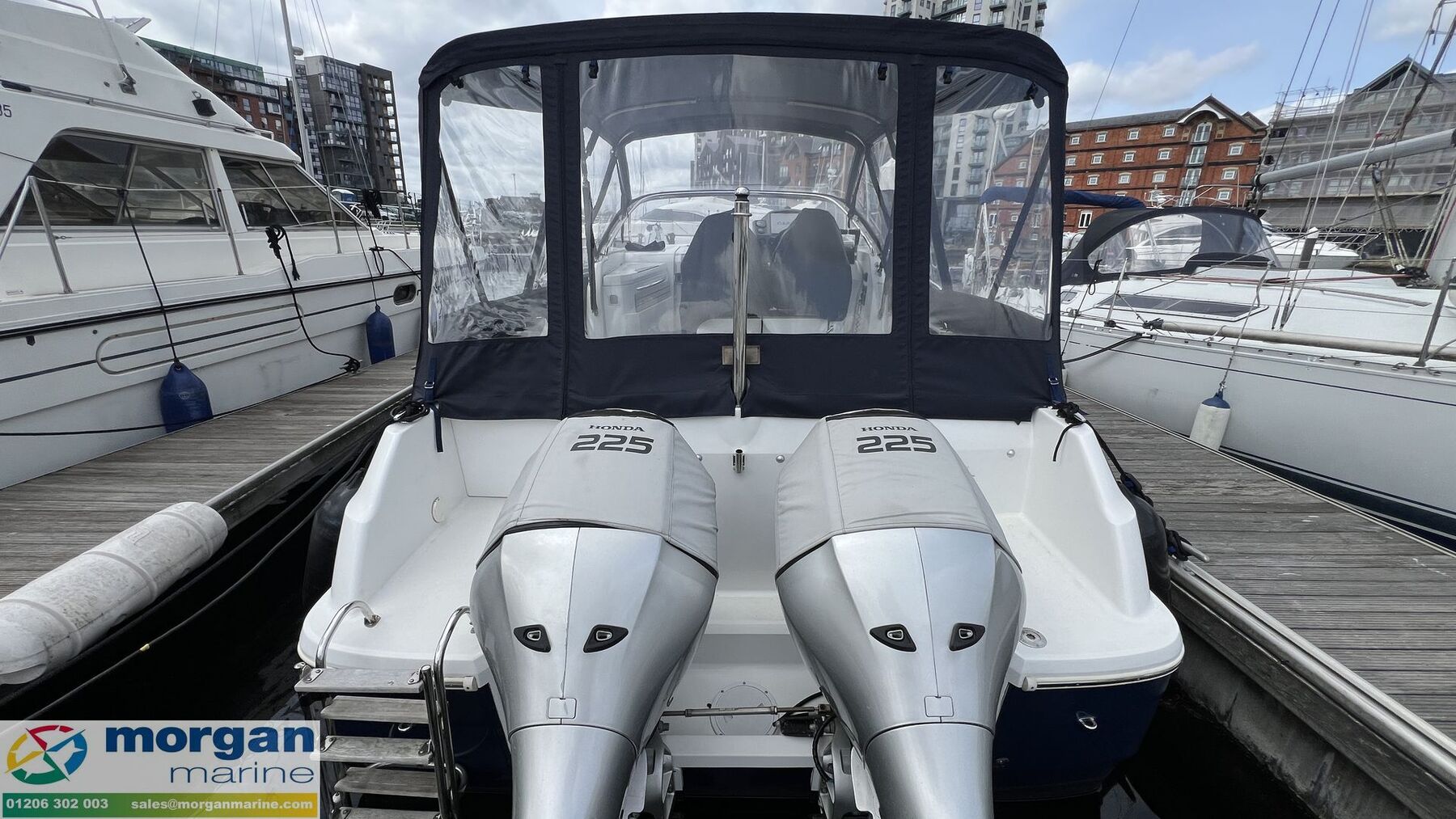 We are delighted to present this superb 2013 Jeanneau Cap Camarat 8.5 WA “Bertie”, newly arrived at Morgan Marine and benefitting from a comprehensive overhaul in 2025, making her a fantastic turnkey opportunity for the season ahead. This stylish and versatile walkaround cruiser has been exceptionally well maintained and thoughtfully upgraded, combining performance, comfort, and practicality. In 2025, “Bertie” underwent significant works including a full hull cut and polish, fresh antifouling, and a complete engine service. She also features a newly upholstered front sundeck mattress cushions, enhancing relaxation space on board. The enclosed canopy, with removable sides and roof sections, offers excellent flexibility whether you want full protection or open-air boating. The onboard electronics have been upgraded to a high standard, including a Garmin 1223 XSV chartplotter, Garmin VHF radio, and Garmin fish finder with depth gauge, all new in 2025. Entertainment is provided by a Fusion audio system with DAB and four speakers, complemented by upgraded LED lighting throughout the boat. Additional onboard convenience comes from 240V sockets with USB and USB-C charging ports. Below deck, the boat offers a comfortable forward 2-berth cuddy cabin with cushions and a double berth conversion, ideal for overnight stays. There is also a separate heads compartment fitted with an electric flush toilet and shower, providing excellent practicality for extended trips. Powered by twin Honda BF225 outboards, “Bertie” delivers strong, reliable performance, while the bow thruster ensures easy handling and manoeuvrability in marinas and tight spaces. Having had just two owners from new, and originally supplied by Morgan Marine, this boat presents in excellent condition and is ready for immediate enjoyment. This is a rare opportunity to acquire a well-specified and recently upgraded Cap Camarat 8.5 WA. Contact Morgan Marine today to arrange a viewing or to find out more.