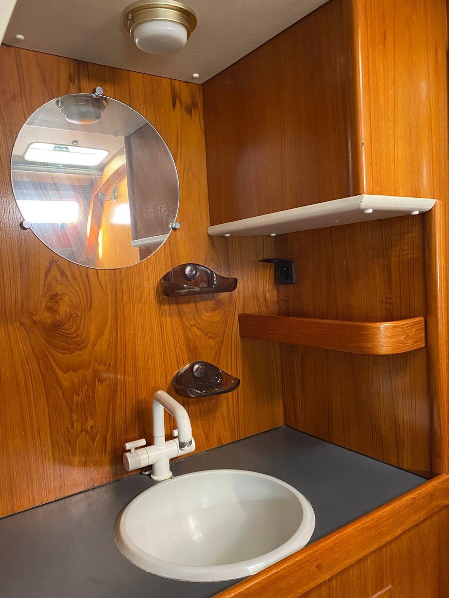 Anker (+ 80 m 10mm chain/Kette/catena), Waterdruk systeem, Buitendouche, Stalling bok, Stootwillen, Handmatige bilgepomp, Zeewaterpomp, Walaansluiting 230V, Elektrische ankerlier, Zwemtrap, Kuiptafel, Bijboot.