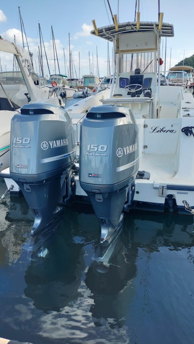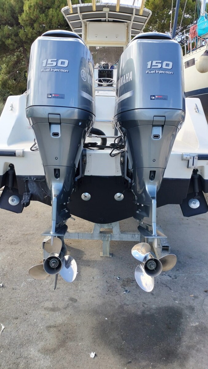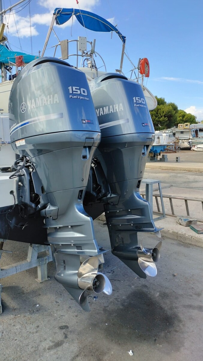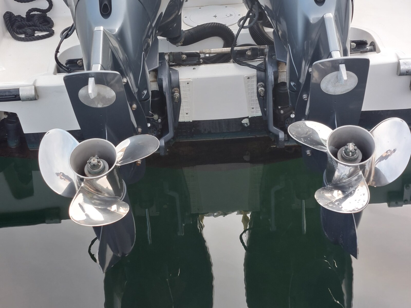 2 Alarme moteur, Alarme de pompe de cale, Ancre (Con catena 50m), 2 Batteries, Phares fixes arrière, Éclairage de courtoisie, 6 Défenses, Pompe de cale automatique, Pompe de cale manuelle, Prise de quai, Connexion eau sous pression à quai, Guindeau électrique, Echelle de bain, Corne, T-Top (New 2025).