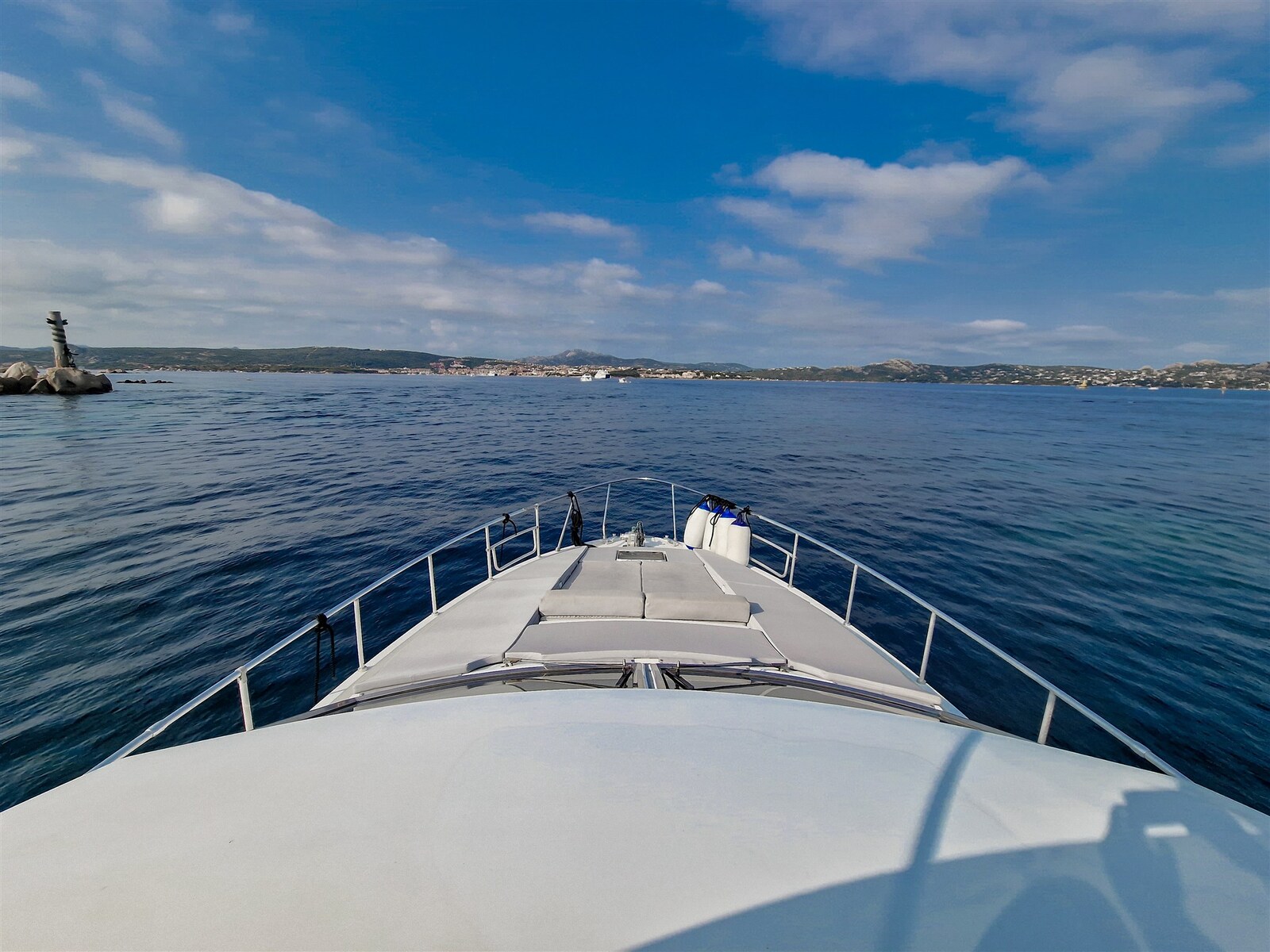 Fume/Gas Detector, 2 Engine Alarm, Bilge Alarm, Water pressure pump, 6 Batteries (150ah), Shore power cable, Guard rail, Deck Shower, Twin Steering, Headlights fixed on the stem, 2 Electric Flaps, 2 Flaps Indicators, Anchor Chain Washdown, Washbasin in the cockpit, Courtesy Lights, Fenders, Gangway, Platform, Automatic Bilge Pump, Entry door, Shorepower connector, Water harbor connector system, Electric Windlass, swimming ladder, cockpit table, Living Room Foldable Table, guard rails with gates, Horn, Bow Winches.