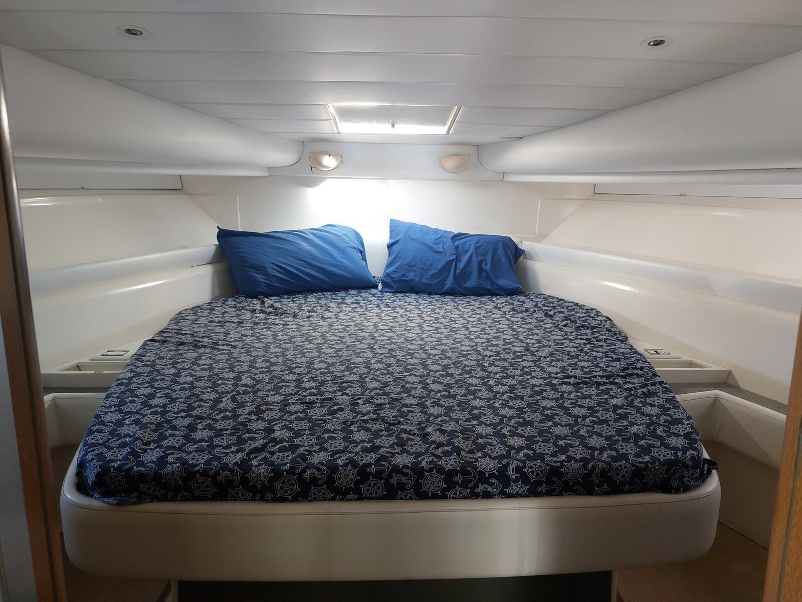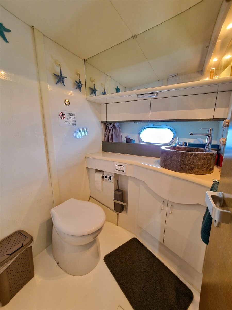Rook-/gasmelder, 2 Motor Alarm, Bilge Alarm, Waterdruk systeem, 6 Accu's (150ah), Walstroomkabel, Railing, Buitendouche, Dubbele besturing, Zoeklicht geïnstalleerd op spiegel, 2 Elektrische trimflappen, 2 Trimflappen indicatoren, Anker (ketting) spoelsysteem, Wasbak in de kuip, Sfeerverlichting, Stootwillen, Loopplank, Platform, Automatische bilgepomp, Ingangsdeur, Walaansluiting 230V, Walaansluiting voor water, City-/Water-connection, Elektrische ankerlier, Zwemtrap, Kuiptafel, Opklapbare salontafel, Zeereling met opening, Hoorn, Boeglier.