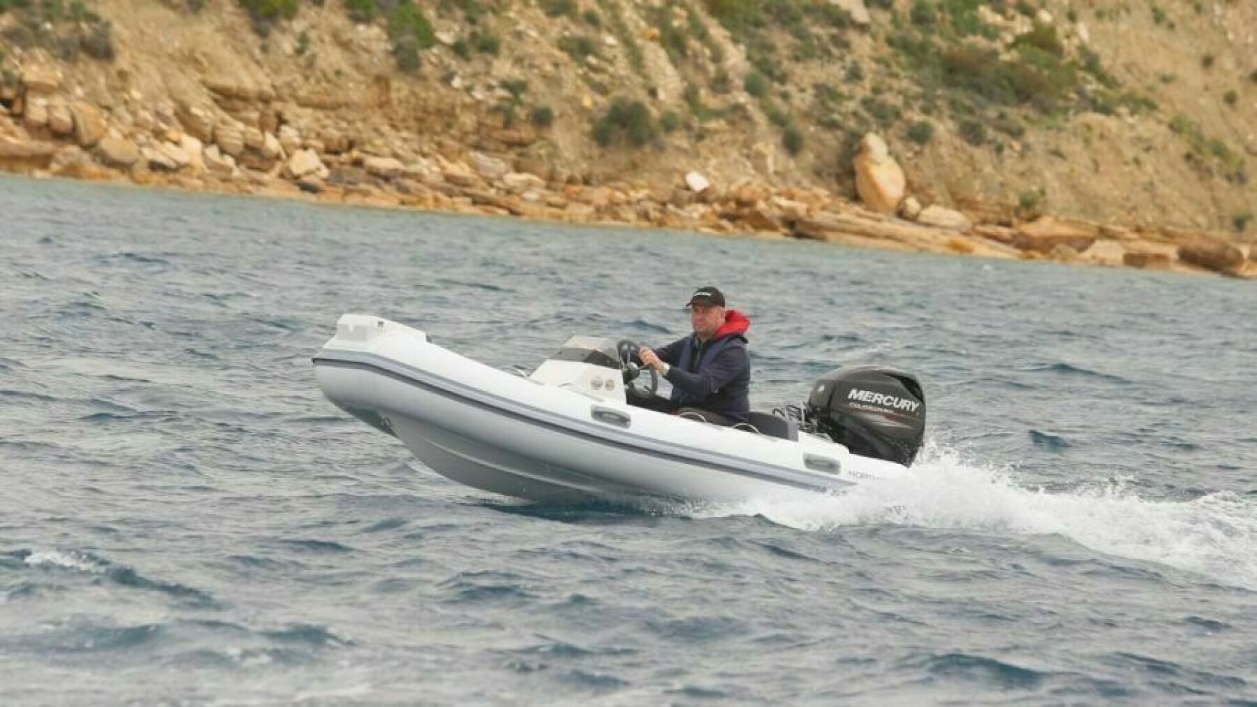 Standard features on this loaded tender include hydraulic steering, an ergonomic console, an acrylic glove box with a USB charging port, an integrated fuel tank with a gauge and water separator, an electrical system with a switch panel, LED navigation lights, an all-around white light, an automatic bilge pump, large storage areas, telescoping cleats, and lifting rings.
