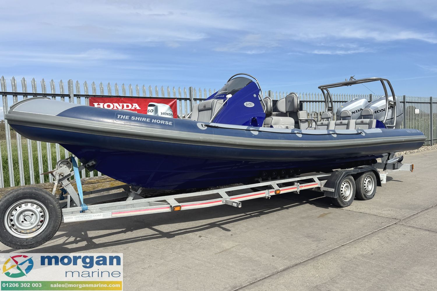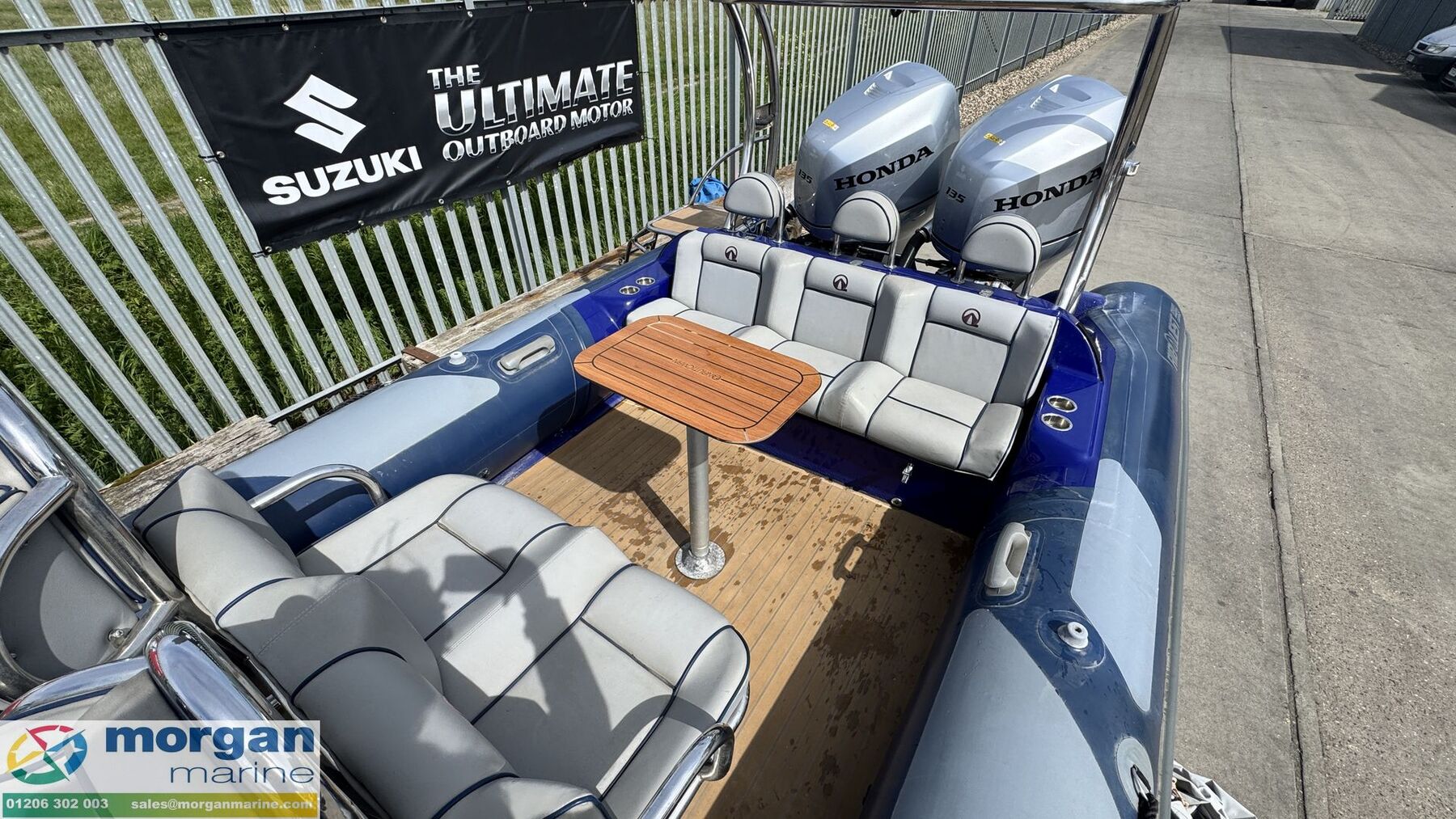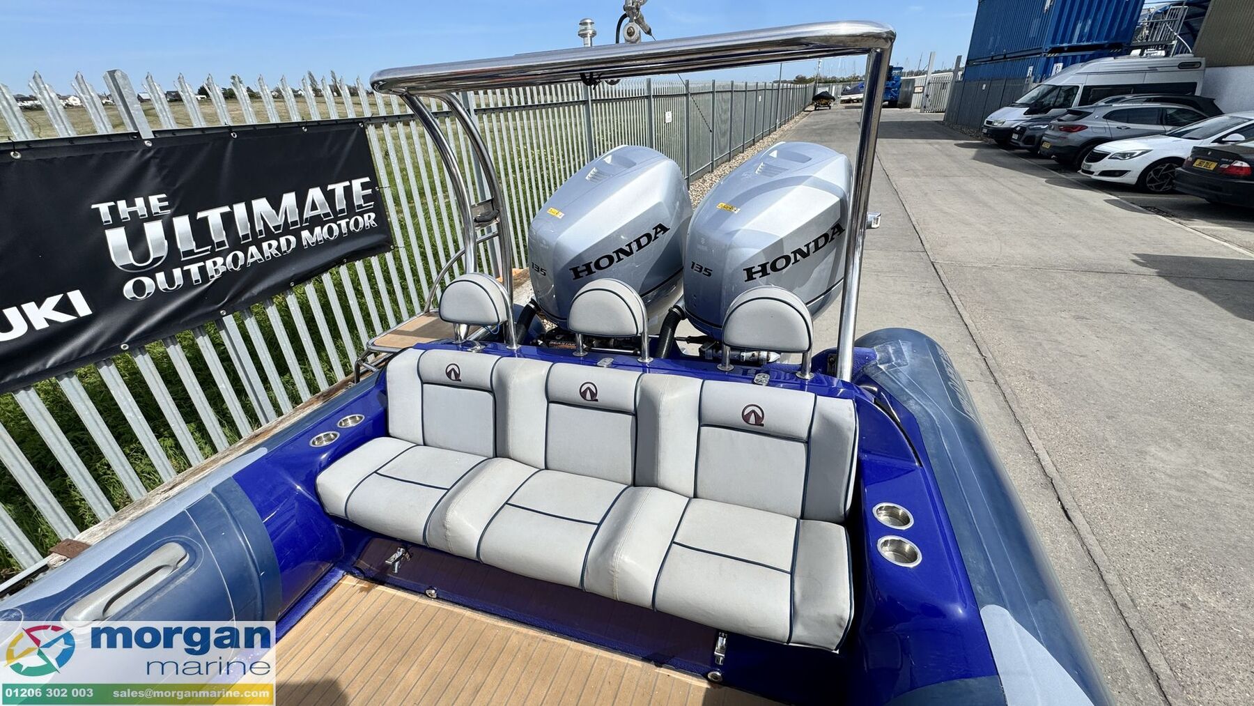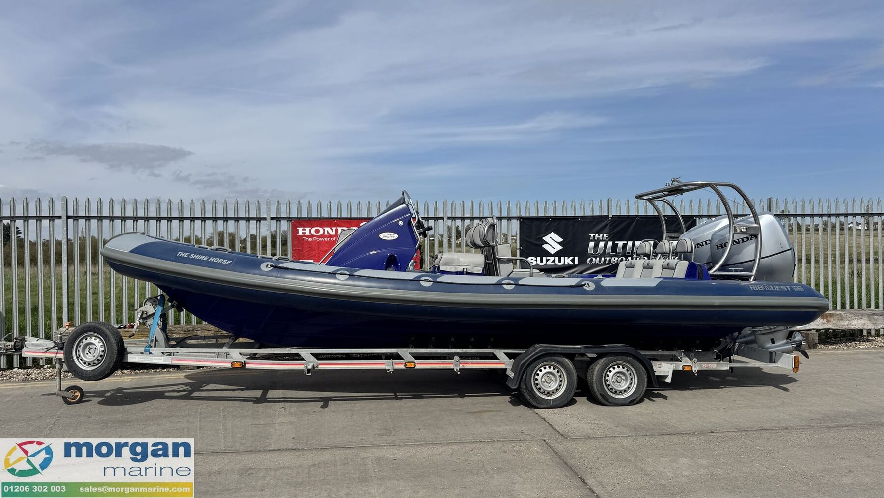 2016 Ribquest 750 is a fantastic, versatile RIB that’s perfect for water sports, coastal cruising, or enjoyable days out on the water with family and friends. Powered by twin Honda BF135 outboards, the boat offers strong performance, reliability, and smooth handling, making it equally suited to towing water skiers or exploring the coastline at speed. Built with a solid GRP hull and durable Hypalon tubes, the boat is designed for stability, safety, and long-term durability. The seating layout is both practical and comfortable, featuring four jockey seats with supportive wing backrests and useful storage underneath, along with a three person rear bench seat with backrest that provides additional seating for passengers. This boat is well equipped with quality electronics including a Garmin GPSMap chart plotter for navigation, and Icom VHF radio for communication. A Fusion audio system with speakers is also fitted, providing great sound while out on the water. It also benefits from a Stainless Steel A-frame and a full boat cover to help protect it when not in use. This boat sits on an SBS R4/2600EL roller trailer, making launching and recovery straightforward. Overall, the boat is in good condition and is an excellent all-rounder, ideal for water skiing, days out with friends and family, or simply enjoying time on the water. Contact Morgan Marine today to arrange your viewing and see this fantastic boat for yourself.