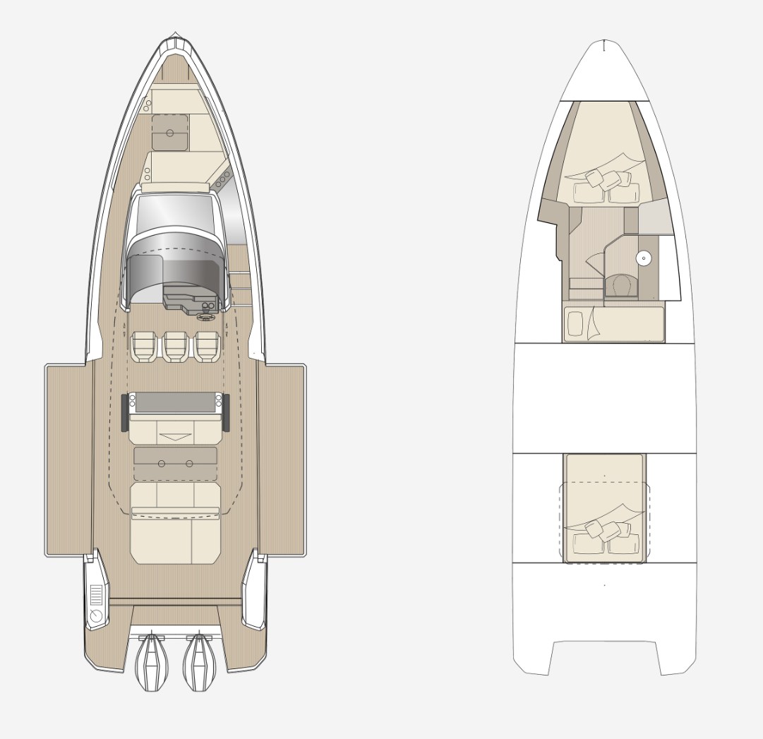De Saxdor 400 GTS biedt de ultieme openluchtervaring: een volledig doorloopdek, een slanke stuurconsole beschermd door glas en opklapbare terrassen die de grens tussen boot en zee vervagen. Met modulaire stoelen en converteerbare zonnedekken wordt elk moment aan boord getransformeerd, of u nu wilt ontspannen, socializen of vol gas wilt racen. De 400 GTS wordt aangedreven door twee buitenboordmotoren (tot 850 pk) en vaart op een dubbeltraps romp met een 21° V, wat zorgt voor dynamische snelheid en een uitzonderlijk reactievermogen. Gebouwd met een lichtgewicht glasvezeltechniek met vacuüminfusie, is het ontworpen voor maximaal comfort, zelfs tijdens de langste dagen op zee. Aarzel niet om contact met ons op te nemen om de uwe te boeken!