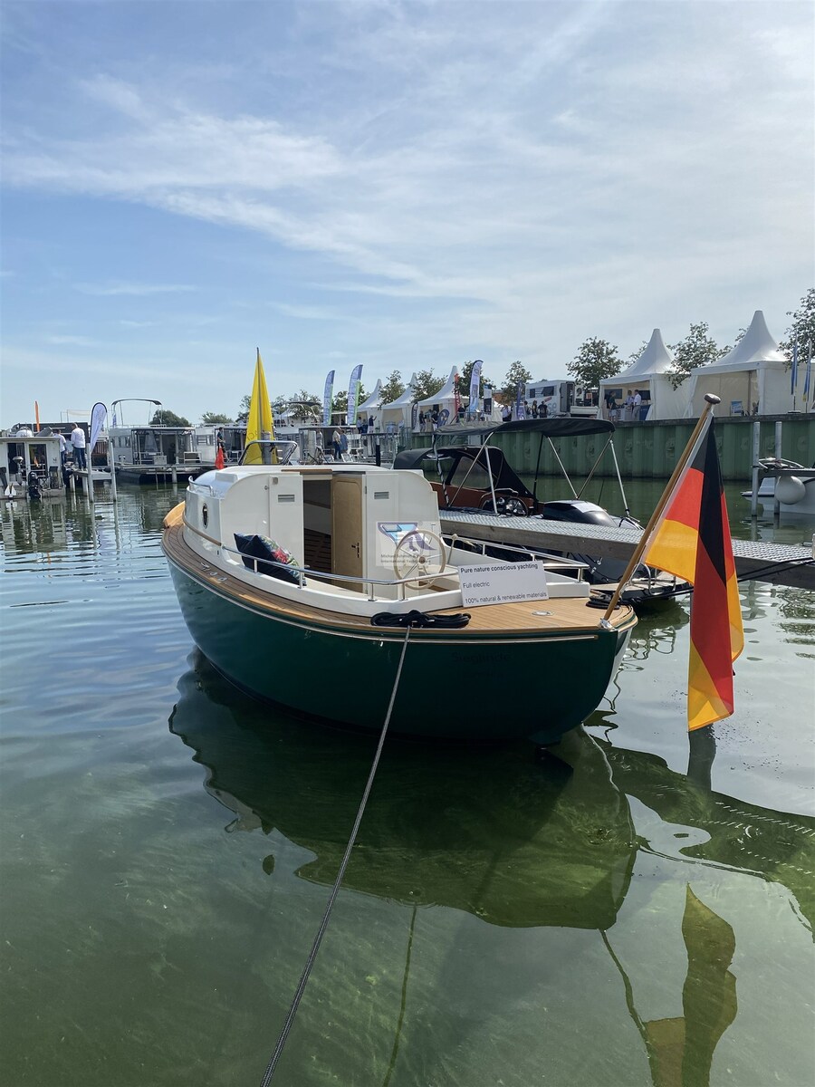 Découvrez l’unique bateau Tuck 22 F chug avec une propulsion électrique respectueuse de l’environnement et une construction durable en fibres de lin. Ce bateau fabriqué à la main combine l’artisanat traditionnel avec une technologie moderne et respectueuse de l’environnement. La propulsion électrique assure des trajets silencieux et vous permet de profiter de la nature dans toute sa splendeur, sans gaz d’échappement ni bruit.