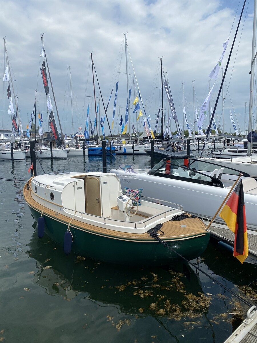 Scopri l'esclusivo Tuck 22 F chug boat con un azionamento elettrico ecologico e una costruzione sostenibile in fibre di lino. Questa barca artigianale combina l'artigianato tradizionale con la tecnologia moderna ed eco-consapevole. L'azionamento elettrico garantisce una guida silenziosa e ti permette di goderti la natura in tutto il suo splendore, senza gas di scarico e rumore.