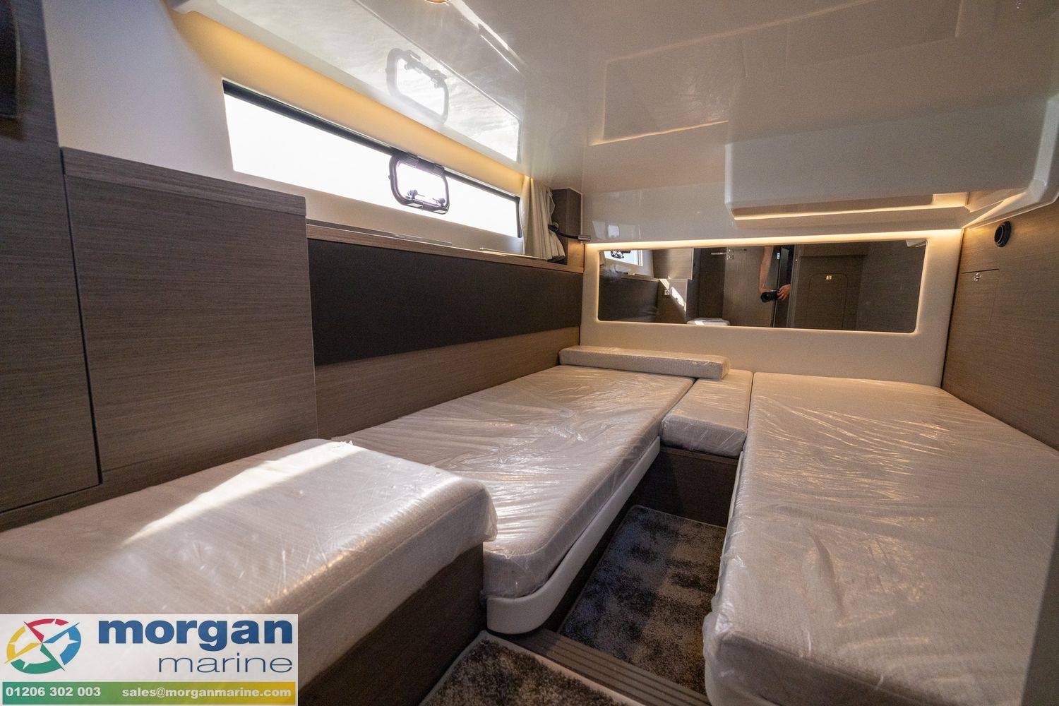 Jeanneau Merry Fisher 1295 Fly with triple Yamaha 300hp (white) - Steer By Wire and joystick - plus a saving of over £50,000 on the RRP. This boat has a fantastic specification - bursting with over £82,000 extras including Trim Level Premiere, aft closing canopy, bow thruster Garmin electronics, carpets, inverter and diesel heating - making one of the best best specified Merry Fisher 1295s. A fantastic wheelhouse fisher / cruiser with flybridge - great for day trips and overnight stays with 3 cabins (6 berths), galley (with electric stove + oven and pressurised hot water) and two toilet / shower compartments. Plenty of space onboard either in the large wheelhouse, the aft cockpit saloon, the bow sunpad or the flybridge with second helm position and full engine controls. Prepared + antifouled and complete with Morgan Marine handover. CE category B for 10 and C for 12. 2026 model year Jeanneau Merry Fisher 1295 Fly available to order for UK delivery - alternative specifications in stock at Morgan Marine. NB - library photos may not reflect specification of boat.