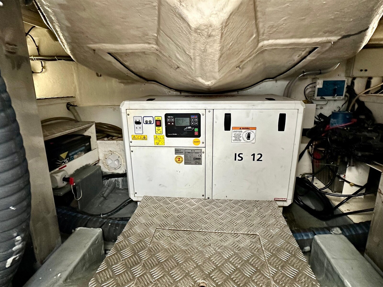 AIS, Angolo barra, Antenna radar, Comando motori elettronico, Computer di bordo (Man), Contamiglia (Furuno Navnet), Display, Ecoscandaglio (Furuno Kw, 2 - 2021), GPS (Furuno), Joystick (for stern and bow thrusters), Pilota automatico (Raymarine), Plotter (Furuno Navnet), Radar (Furuno), Radio VHF (Icom), Sedile Copilota.