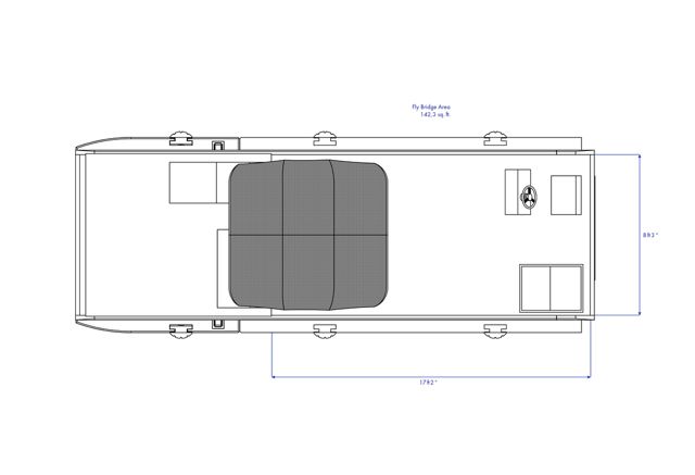 La propulsion est assurée par deux moteurs hors-bord de 15 ou 20 CV, direction mécanique depuis la terrasse, avec deux réservoirs de 40 L chacun.