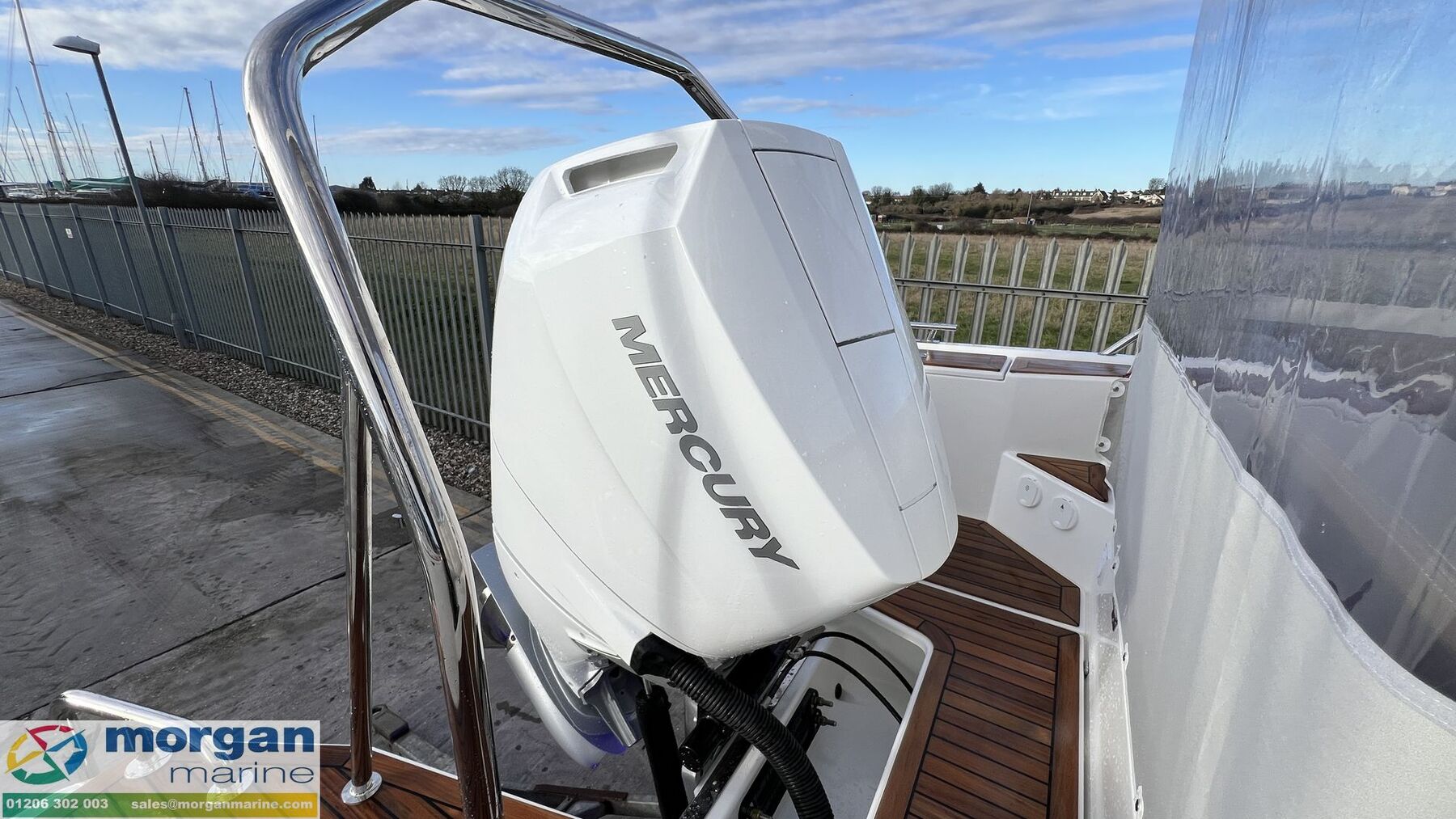 Machinery: Mercury Verado V10-350 XL: propeller, VesselView 403, Active Trim - Cold Fusion White + Bow thruster. Zipwake dynamic trim control system 450mm. Webasto AT3900 heater / defroster system + 11.5L diesel tank. Fuel capacity: 320L. Fresh water capacity: 56L. CE Category C8.