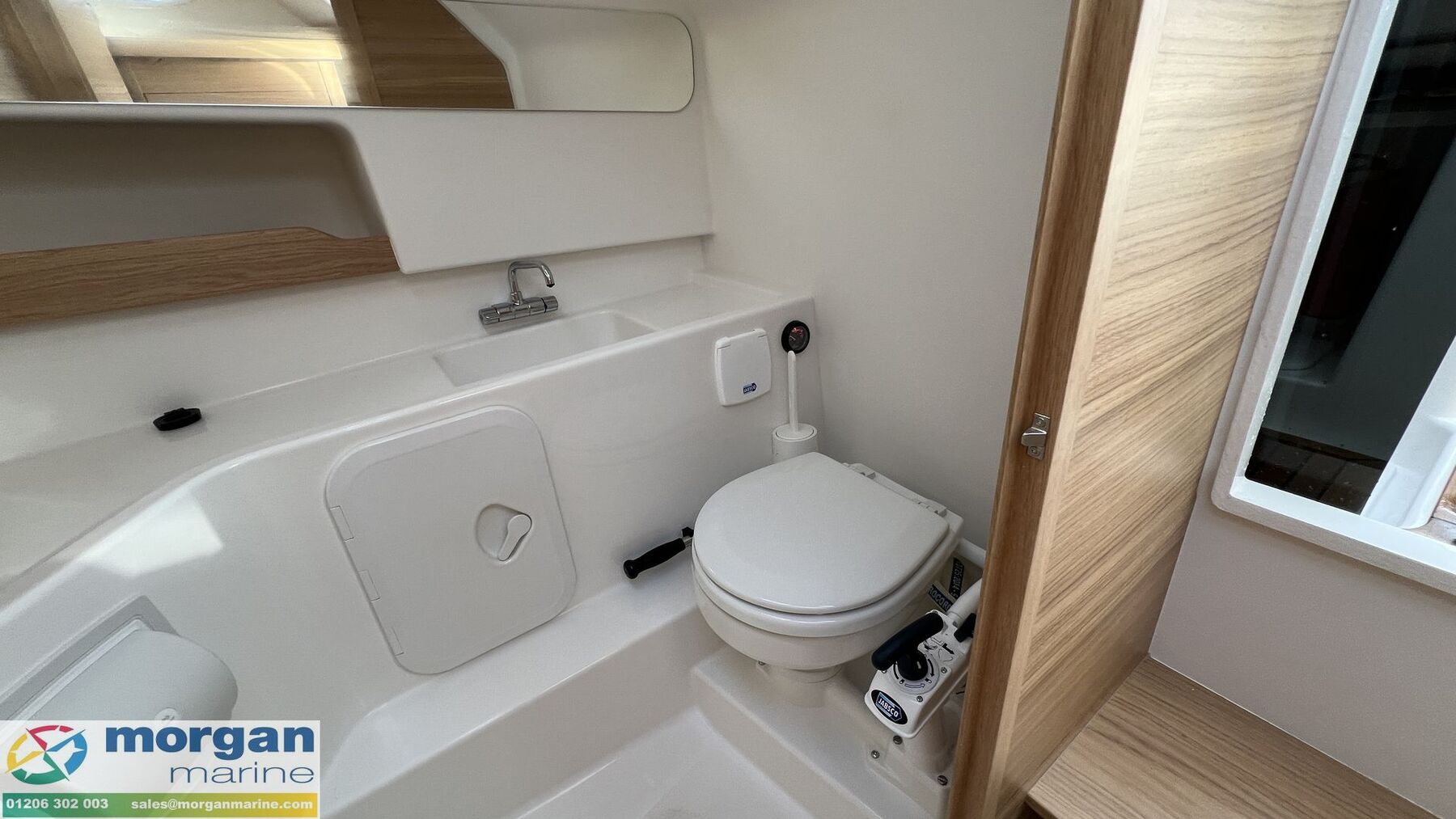Cabin: The forward cabin features a cosy double berth, roof hatch and a dedicated wardrobe. A separate toilet compartment equipped with an electric-flush head + black-water overboard discharge, sink, and shower - ensures onboard convenience and privacy. To enhance onboard comfort, the cabin is fitted with plush carpeting, curtains and Nimbus pillow set.