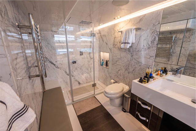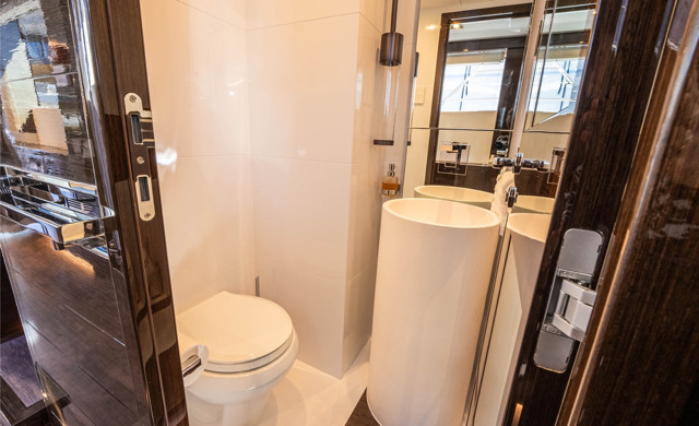 Este yate de 28,96 m (95 pies) ofrece una combinación excepcional de lujo rendimiento y confort con 4 camarotes y una motorización diésel de 2 x 1 925 CV de Caterpillar C-32. Equipado con un estabilizador giroscópico Seakeeper SK 35 2 generadores aire acondicionado jacuzzi en el flybridge un beach club y una plataforma hidráulica además de cubiertas de teca. La distribución de camarotes incluye una suite principal un segundo camarote principal y 2 camarotes con camas gemelas así como espacio para 5 tripulantes. El diseño interior de Kelly Hoppen incluye portillos abatibles una puerta de entrada en acero inoxidable un wet bar en el cockpit trasero y equipos de cocina de las marcas Miele y Siematyc. Este yate es ideal para cruceros de larga duración o escapadas en familia y amigos con instalaciones exteriores como un beach club asientos en la cubierta trasera una plataforma de baño hidráulica asientos para tomar el sol en la cubierta de proa cojinería exterior y un hardtop con techo eléctrico retráctil. El yate cuenta con sistemas avanzados de navegación como un Glass Bridge un joystick Aventics anclas de acero inoxidable y una cámara FLIR M364C. El sistema eléctrico incluye dos generadores Kohler de 35 kW un desalinizador Sea Recovery XL2200 un sistema de control AC/DC y luces submarinas. Contáctenos para más información o para organizar una visita