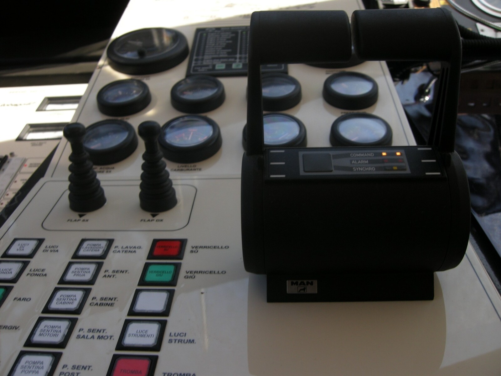 Alarme moteur, Ancre (DELTA 32 kg), Eau sous pression, Passavant en teck, Douche de cockpit, Phare de poursuite, Flaps hydrauliques, Bossoirs pour annexe, Extincteur(s) fixe(s) (2025), Moteur hors-bord pour annexe (TOHATSU 15 HP 2025), Défenses, Passerelle (HYDRAULIC GANDOLA 2016), Plateforme arrière (2010), Pompe de cale automatique, Pompe de cale manuelle, Cockpit en teck, Prise de quai, Onduleur, Guindeau électrique (LEWMAR Falcon 1.700 W), Echelle de bain, table de cockpit, Annexe (ZODIAC YL 275 2025), Corne.