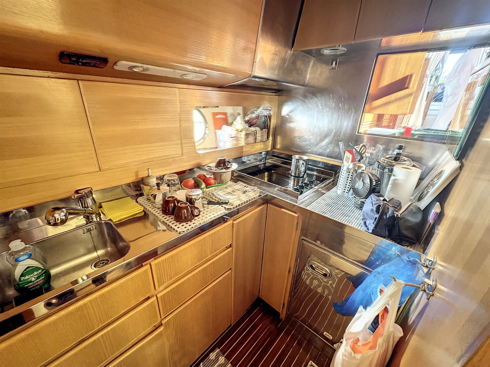 Motor Alarm, Anker (DELTA 32 kg), Waterdruk systeem, Teak op gangboorden, Buitendouche, Verstelbaar zoeklicht, Hydraulische trimflappen, Kraan voor bijboot, Brandblussysteem (2025), Bijboot buitenboordmotor (TOHATSU 15 HP 2025), Stootwillen, Loopplank (HYDRAULIC GANDOLA 2016), Platform (2010), Automatische bilgepomp, Handmatige bilgepomp, Teak in kuip, Walaansluiting 230V, Gelijkrichter, Elektrische ankerlier (LEWMAR Falcon 1.700 W), Zwemtrap, Kuiptafel, Bijboot (ZODIAC YL 275 2025), Hoorn.