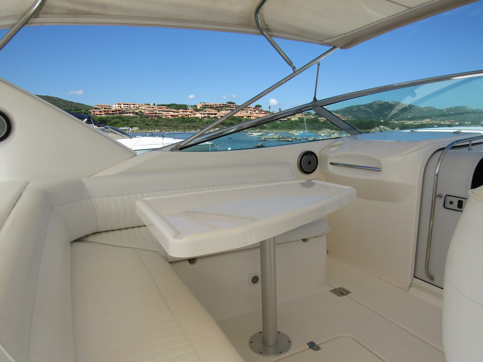 Fume/Gas Detector, 2 Engine Alarm, Bilge Alarm, Water pressure pump, 6 Batteries, Special Colour (Blu navy), Deck Shower, Hydraulic Flaps, Fire Extinguishing System, Anchor Chain Washdown, Courtesy Lights, Platform, 3 Automatic Bilge Pump, Entry door, Shorepower connector, Water harbor connector system, Voltage Rectifier, Rollbar, Electric Windlass, swimming ladder, cockpit table, Tender (con FB Mercury 3,5 Hp), Horn.