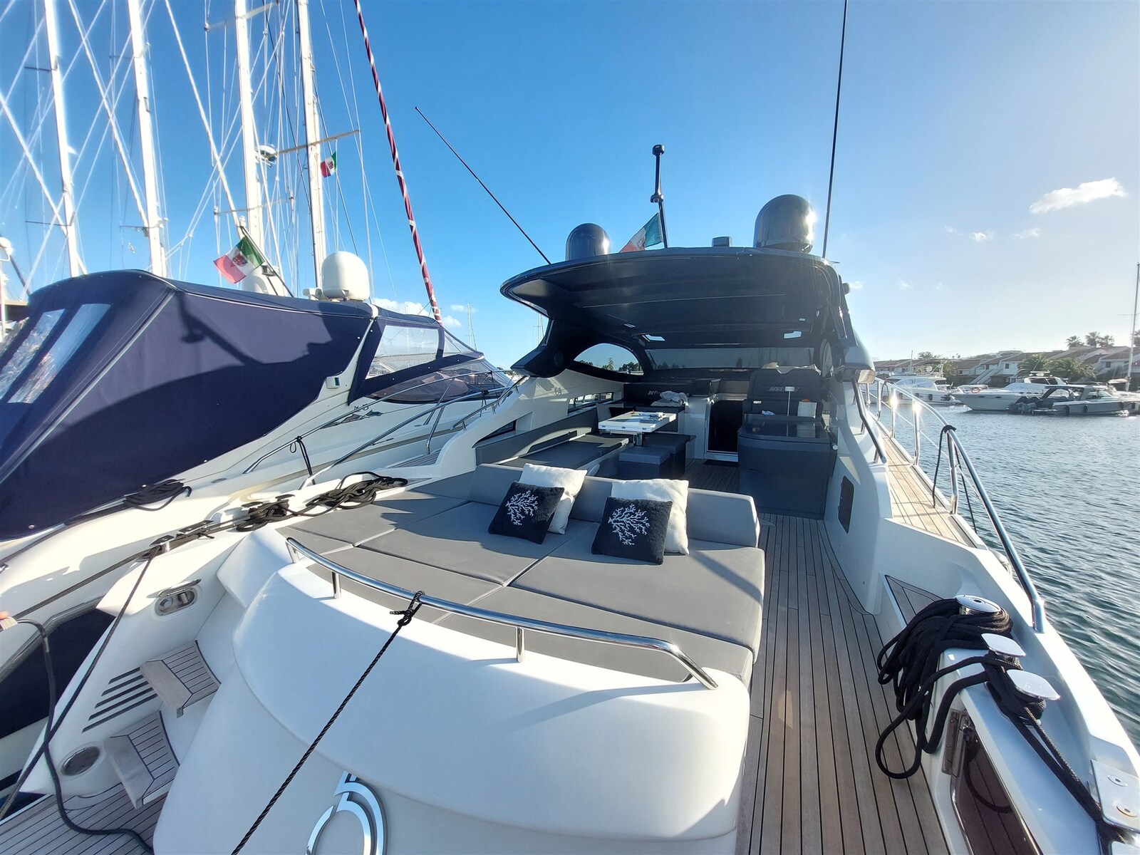 Le nouvel INfive n’a pas son pareil. Le plus rapide de sa catégorie avec un maximum de 45 nœuds. 3 cabines + marin ou garage à 16 mètres. Pour ceux qui veulent sortir des sentiers battus. IN five est équipé du MAN i6 de 800 ch et la propulsion est garantie par des transmissions de surface Top-System qui, soutenues par le système « Easy-trim », garantiront au yacht non seulement d’excellents niveaux de performance mais aussi un planage à basse vitesse. La manœuvrabilité sera confiée au joystick situé sur le poste de barre. Fiftyfive ajoute un propulseur d’étrave et un propulseur de poupe pour une maniabilité maximale même lorsqu’il est amarré dans des conditions critiques. Comme neuf, et prêt à tous les essais, ce yacht de sport de dernière génération n’attend plus qu’un nouveau propriétaire pour vivre d’autres saisons passionnantes. Possibilité de reprendre le bail en cours.