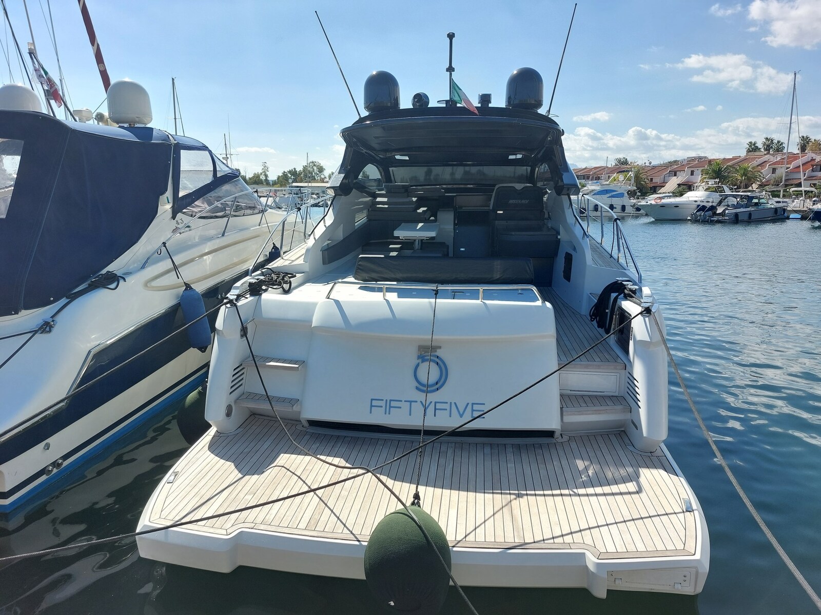 La nuova INfive non teme confronti. La più veloce della categoria con 45 Kn di massima. 3 cabine + marinaio o garage in 16 metri. Per chi vuole uscire fuori dagli schemi. IN five monta i MAN i6 da 800 hp e la propulsione è garantita da trasmissioni di superficie Top-System che, sostenute dal sistema “Easy-trim” garantiranno allo yacht non solo livelli prestazionali d’eccellenza ma anche la planata a bassa velocità. La manovrabilità sarà affidata al joystick in plancia di comando. Fiftyfive aggiunge elica di prua ed elica di poppa per una manegevolezza massima anche in fase di ormeggio in condizioni critiche. Pari al nuovo, e pronta ad ogni prova, questo sport yacht di ultimissima generazione aspetta soltanto un nuovo armatore per vivere altre entuasmanti stagioni. Possibilità di subentro al leasing in corso.