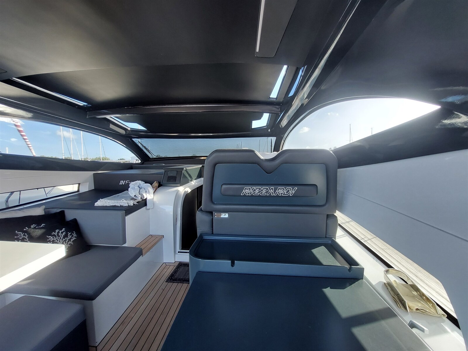 The new INfive is second to none. The fastest in its category with a maximum of 45 knots. 3 cabins + sailor or garage in 16 meters. For those who want to get out of the box. IN five is equipped with the 800 hp MAN i6 and propulsion is guaranteed by Top-System surface transmissions which, supported by the "Easy-trim" system, will guarantee the yacht not only excellent performance levels but also low-speed planing. Manoeuvrability will be entrusted to the joystick on the helm station. Fiftyfive adds bow thruster and stern thruster for maximum handling even when moored in critical conditions. Like new, and ready for any test, this latest generation sport yacht is just waiting for a new owner to experience other exciting seasons. Possibility of taking over the current lease.