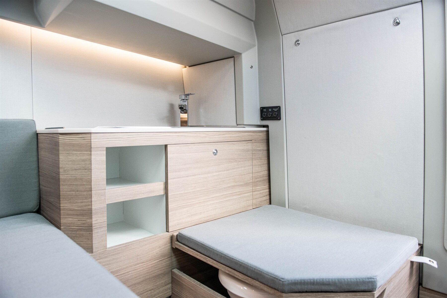Die Saxdor 270 GTO wurde nach der Saxdor-Philosophie entwickelt, mit einem leichten Double-Redan-Rumpf, der sich auf dem Wasser weich verhält. Dieses Modell bietet die Leistung, Geschwindigkeit und Kraftstoffeffizienz, für die frühere Versionen bekannt waren. Der umgekehrte Bug mit einem sehr tiefen V-förmigen Einstieg reduziert den Aufprall auf die Wellen, verbessert die Gesamtstabilität des Bootes und macht das Fahren angenehmer. Die leichte und robuste Konstruktion, die mit der Vakuuminfusionstechnik hergestellt wird, ermöglicht es Ihnen, ein Boot zu haben, das leicht getrailert werden kann und einfach zu Wasser gelassen oder geborgen werden kann. Die 270 GTO ist die ideale Wahl für alle, die die Sonne lieben: Dank der beiden Sonnendecks – eines am Bug und eines am Heck – haben Sie viel Platz zum Entspannen. Das hintere Sonnendeck kann bei Bedarf zu einer komfortablen Essecke umgestaltet werden. Kontaktieren Sie uns für weitere Informationen