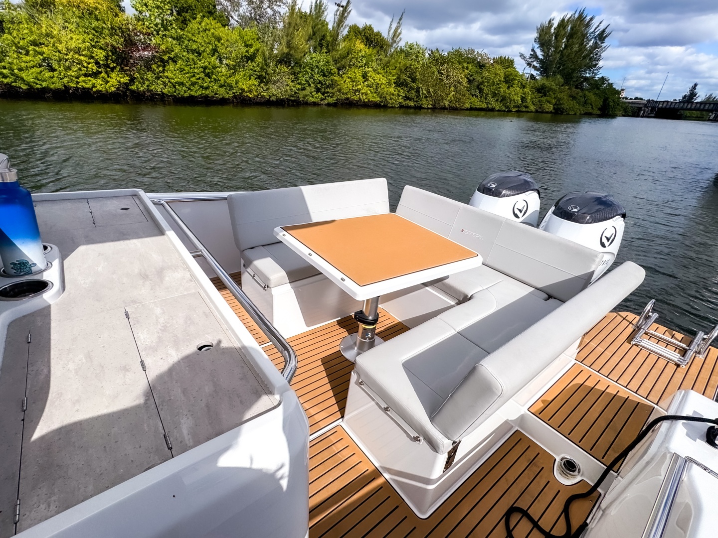 • Large aft platform and generous storage space in lockers under the bar and seating.